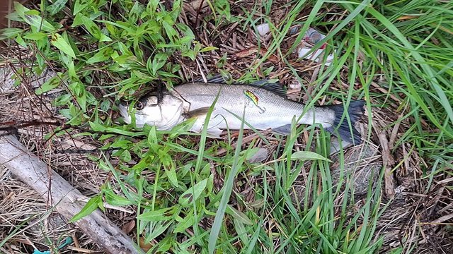安定のバスルアーをぶん投げましたらゴチンとアタリ('ω')キタ‐!!