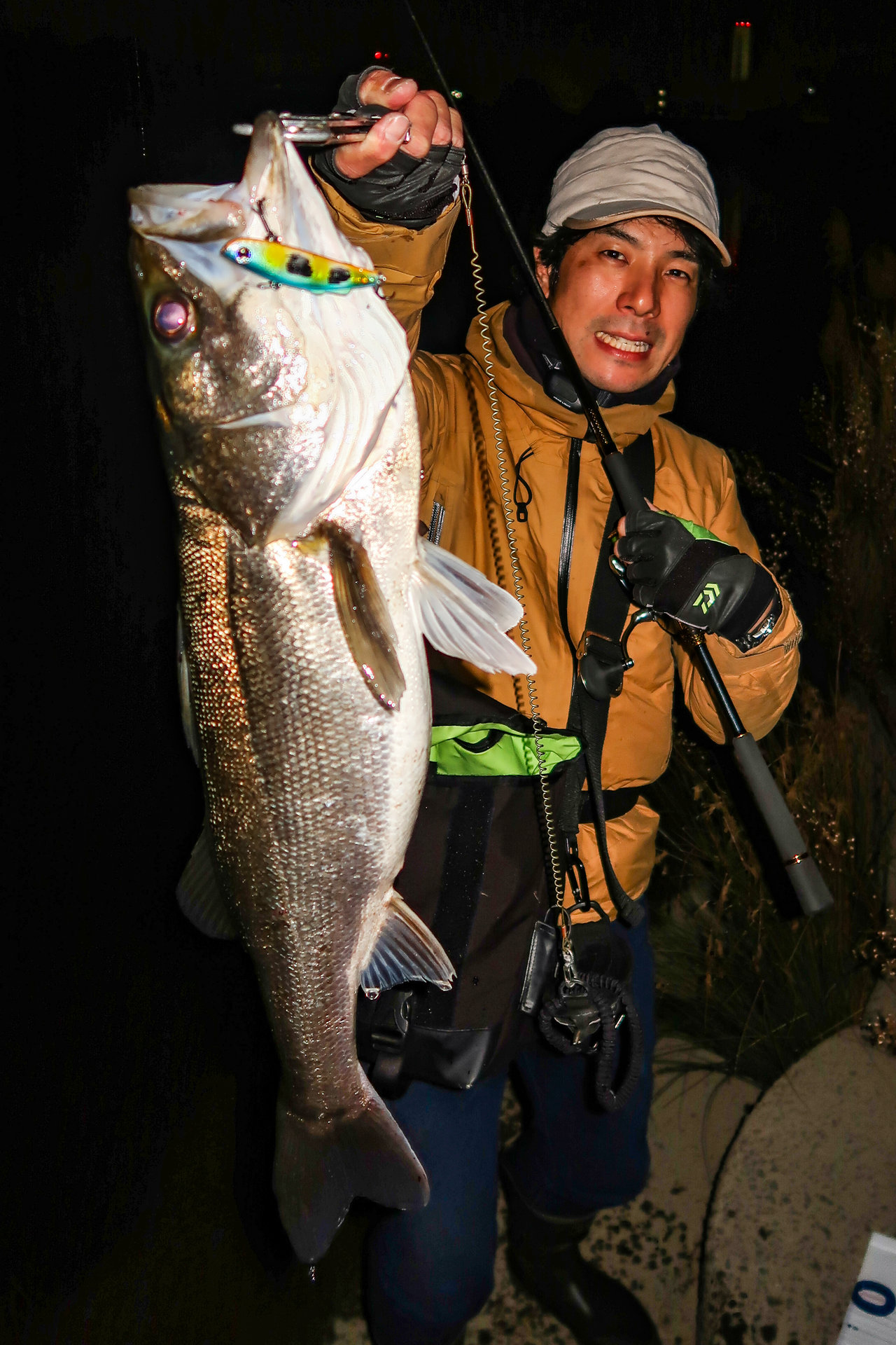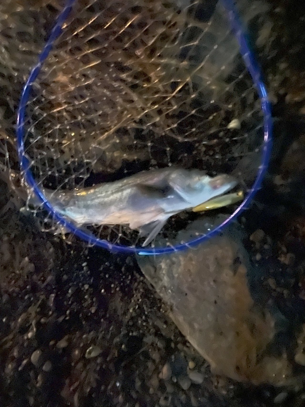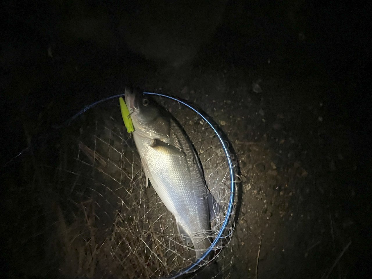 水温は11.5℃まで下がり、明暗にシーバスの気配は無く厳しそうな状況。橋下暗部のシャローにイナッコが溜まっていたのでそこでターンするようにウィリップを流してみるとヒット!貴重な1本を獲ることができました!
