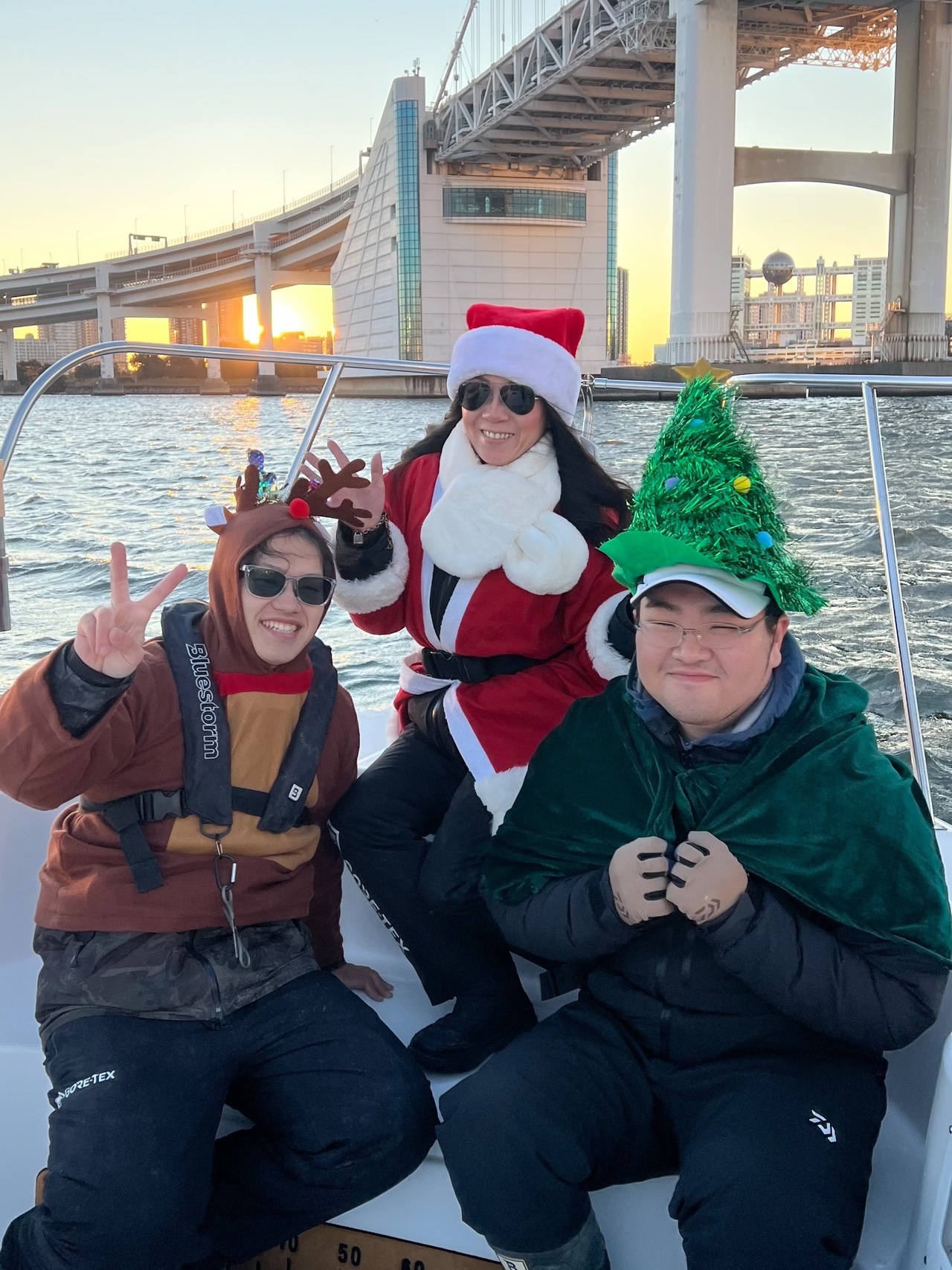 本日は毎年恒例ダイワアパレルの柴田さんご夫妻と南柏店の田中くんとクリスマスコスプレシーバス釣行に行ってきました!!
