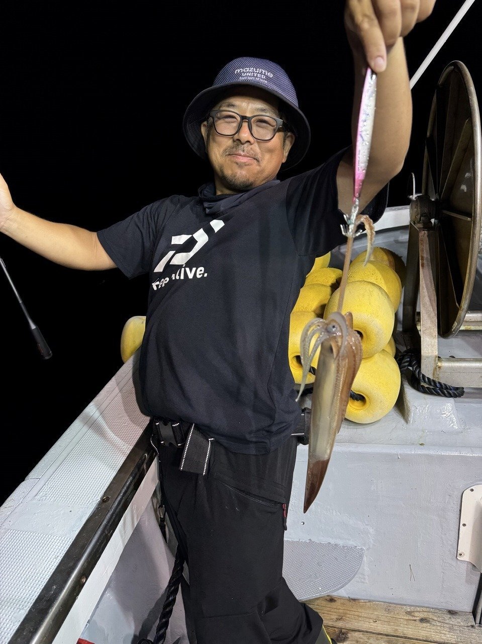 しかし1杯釣るとその後が続かず、こまめにスッテを変えていくと今度はウロコロスッテ30号ブラックにヒット!!
