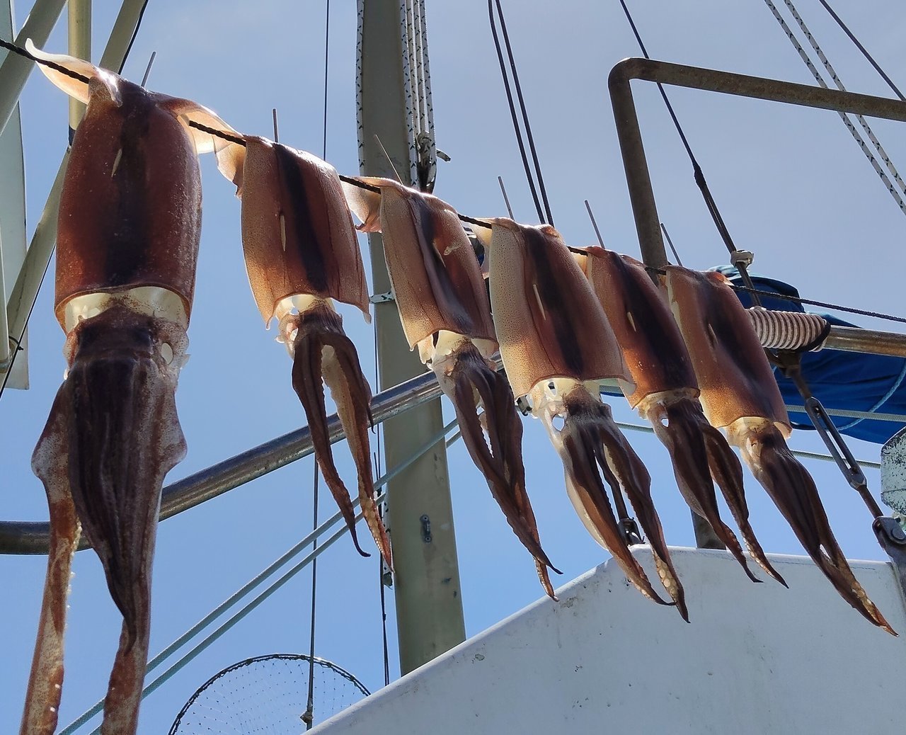 今回は、松部港和八丸にスルメイカを釣りに行ってきました。水深160~220m、オモリ180号、直結8本仕掛けでスタート。朝一の元気なモーニングスルメで1点、3点と調子良く釣れたのですが…その後潮が流れず、テクニカルな釣りに…船長もイカを探して移動を繰り返すも、船中ポツンポツン釣れる程度。掛かり浅く途中でバレてしまって吸盤だけとか、掛けても魚にアタックされてイカが落ちたりとなかなか難しかったです。それでも釣る人は釣ってます。修行あるのみ(笑)