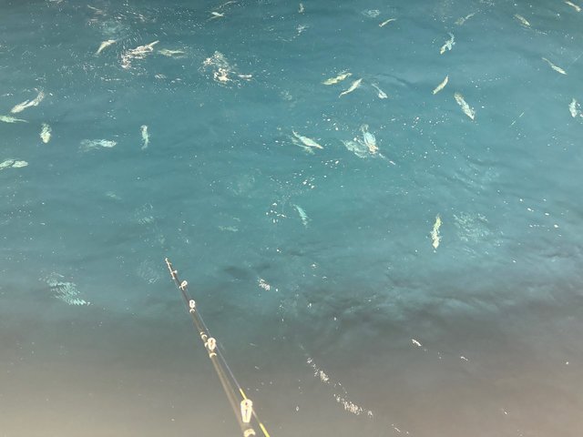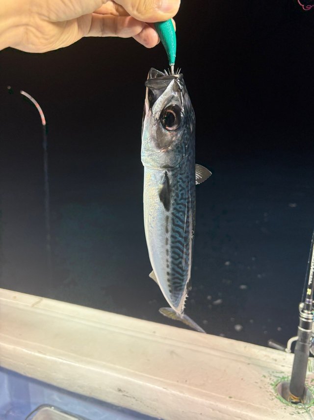 その後右舷側や、ミヨシで釣果報告があり『イカメタル』でとのこと。タックルをイカメタルに持ち替えますがイカの反応続かず、気付くと水面はサバ祭りに!!