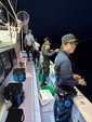 17時に出船し、明るい内はオモリグでスタート。反応は底付近という事で、誘い方のレクチャーを受け見よう見まねでチャレンジ!なかなか、アタリが無い中、あたりが暗くなった頃に南行徳店水野さんに待望のヒット!その後も厳しい中、錦糸町店小川君とがまかつ大藏さんは良型のマルイカとスルメイカを釣り上げるも多田は残念ながらイカの姿を見る事は出来ませんでした。