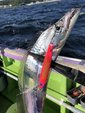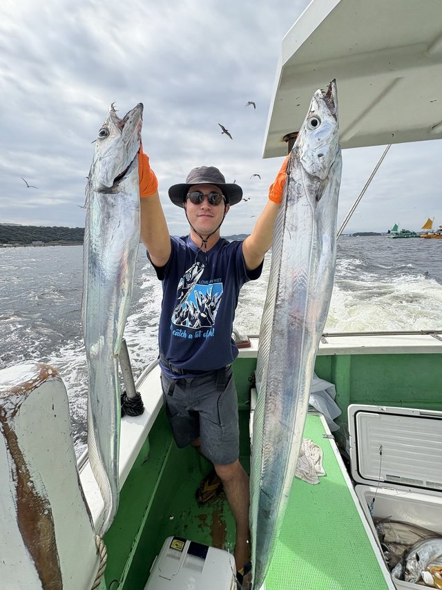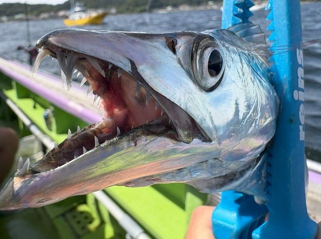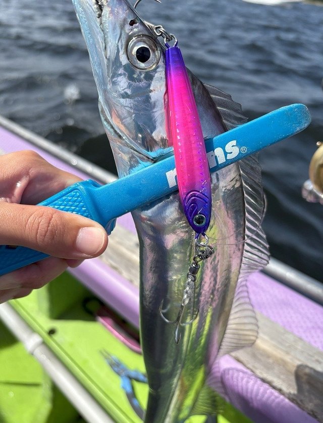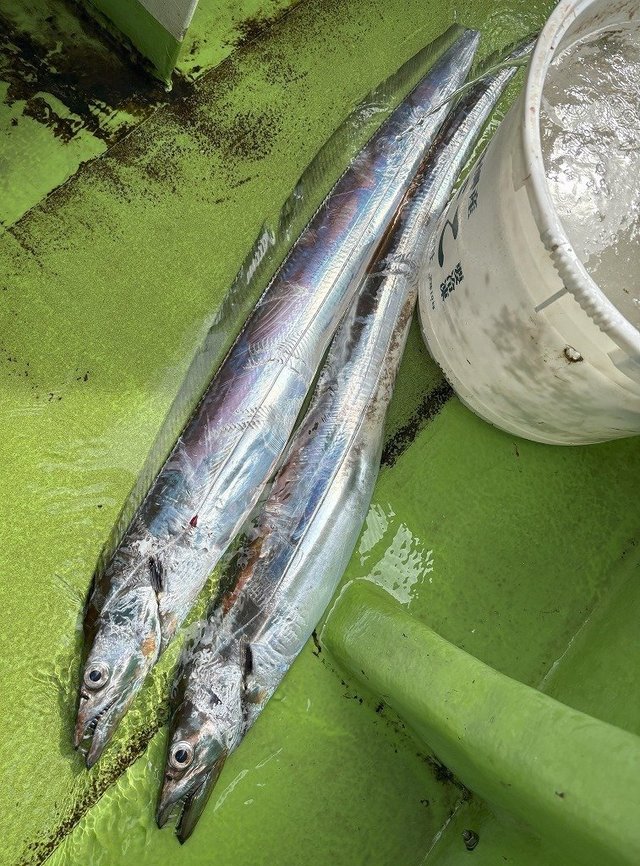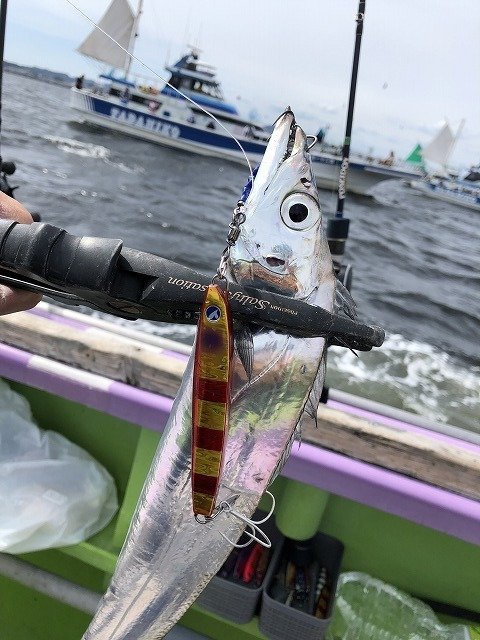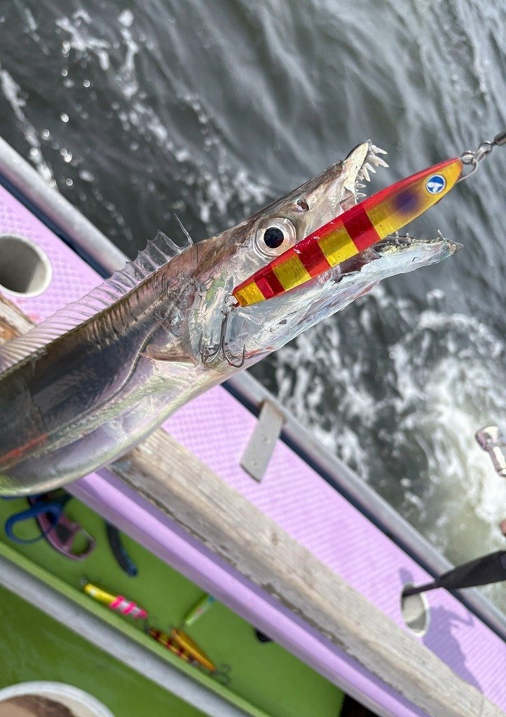 ベイトの群れを見つけてはとにかくブレードジグを早く巻くを繰り返しますがこの日は相当渋くサワラは船中2本のみで終わり私は裏ターゲットにしていたDEKA太刀魚を一本釣って終了でした。。。