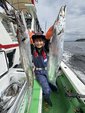 タナは30M~60Mでやはり浅場では小さ目、深場では110オーバーの大き目がかかり、手巻きリールの私は後半はもう腕パンパンでした(笑)