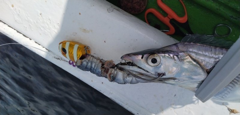 結果サワラ3のタチウオ5で、なんと船中TOP(3匹の方もう一人)の成績を取ってしまいました!!