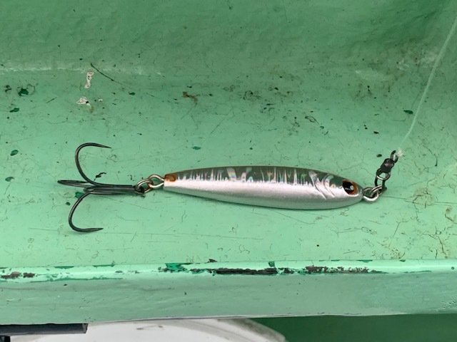 タチウオジギングでは定番の細身で長いジグを最初は使いましたがやはり東京湾のタチウオはTGタイプの小さいジグを好んでいる様子。
