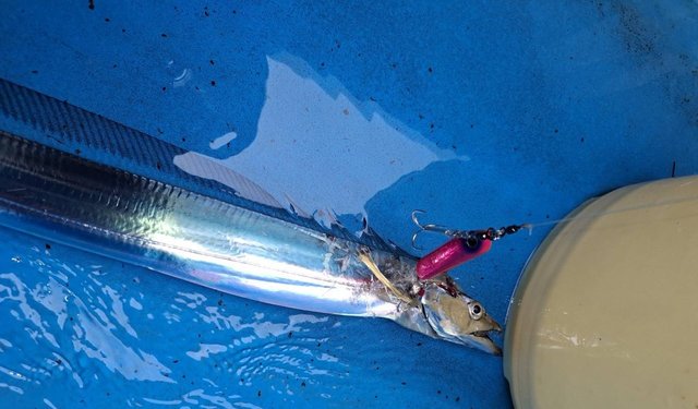 キツメのドラグが出される為サワラを確信しましたが、上がってきたのはドラゴンサイズのタチウオでした(笑)。