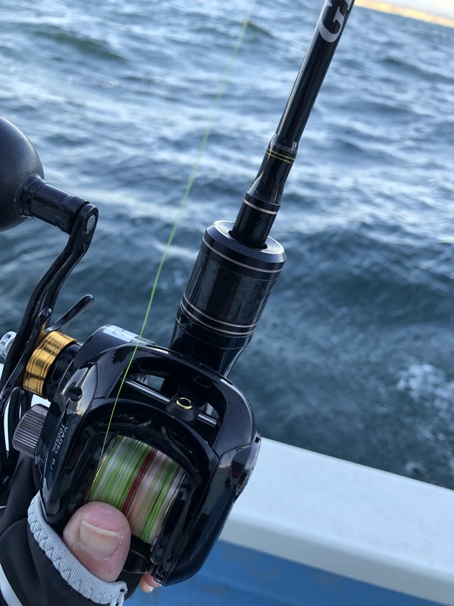 水深40~60M前後、ガツガツ食ってくるアタリはほとんどなく、アタリを出すのに苦戦した。