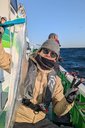 リーダーをハサミで切って船上で組み直してくれるお世話係はやっぱり小島さんです!笑