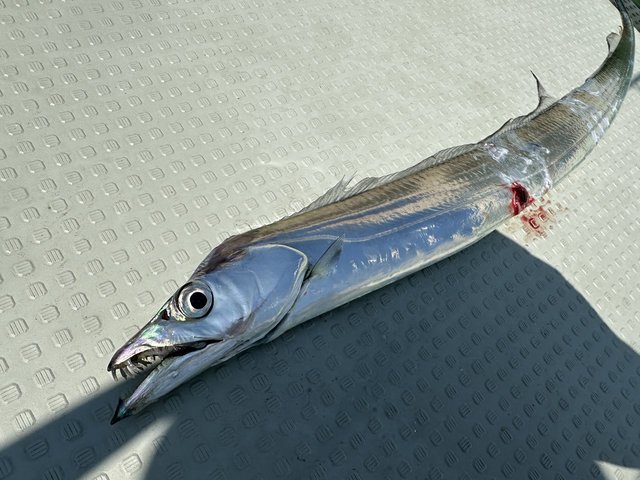 富津沖に魚種縛りなしのなんでも便に行ってきました。朝一はシーバスのビッグベイトからスタート!開始数投で70中盤ぐらいのをかけるもバラシ。その後もチェイスやバイトはあるも乗せきれずにタチウオジギングへ変更!タチウオは活性高く、型も揃っていて短時間ながらも全員安打!当日はスライド幅があるセンターバランス系のジグの方が反応が良く、リア重心系のジグしか持っていなかった自分は苦戦しました...。アクションが大きい方がハマる事もあるので、やはり両方持っていた方が良いですね!