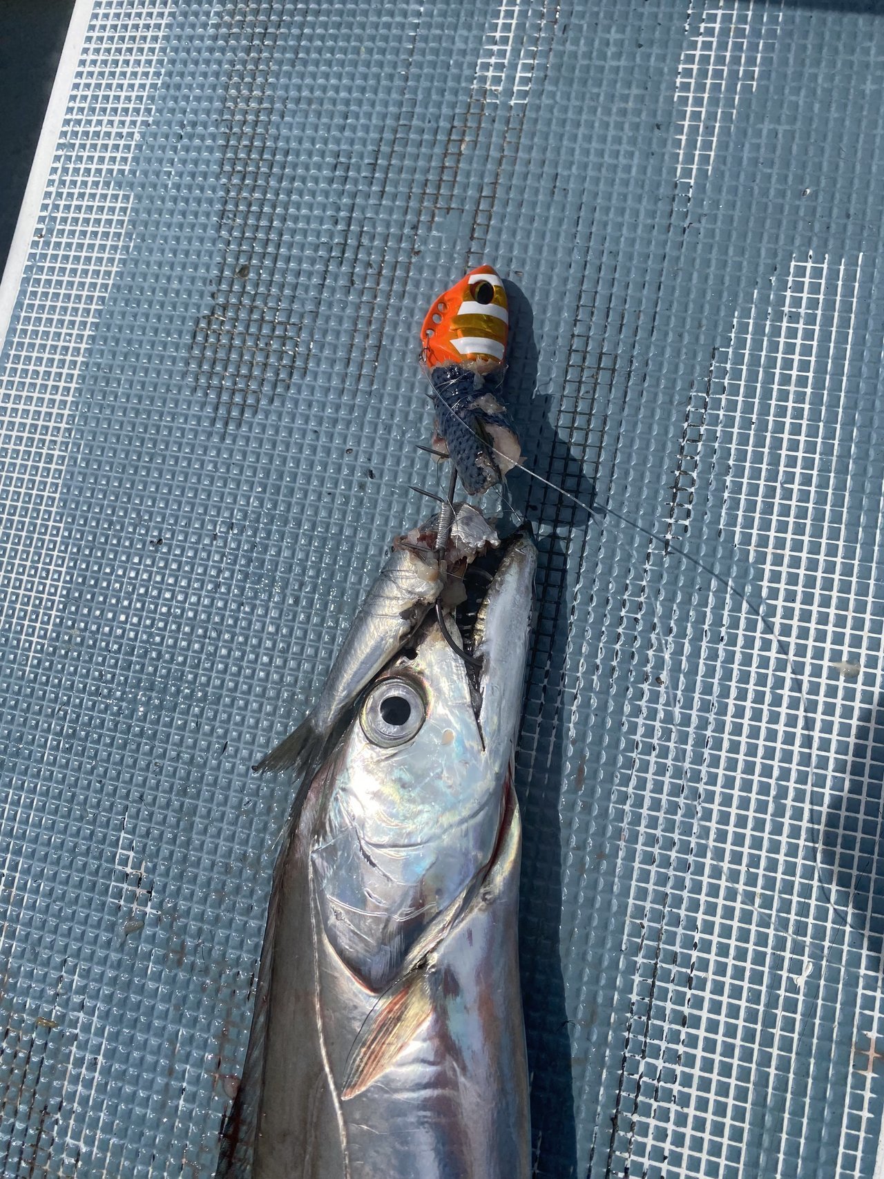 タチウオがヒット!そこから仲間4人でジグやワームなどで10本程釣れて船内が賑やかに!