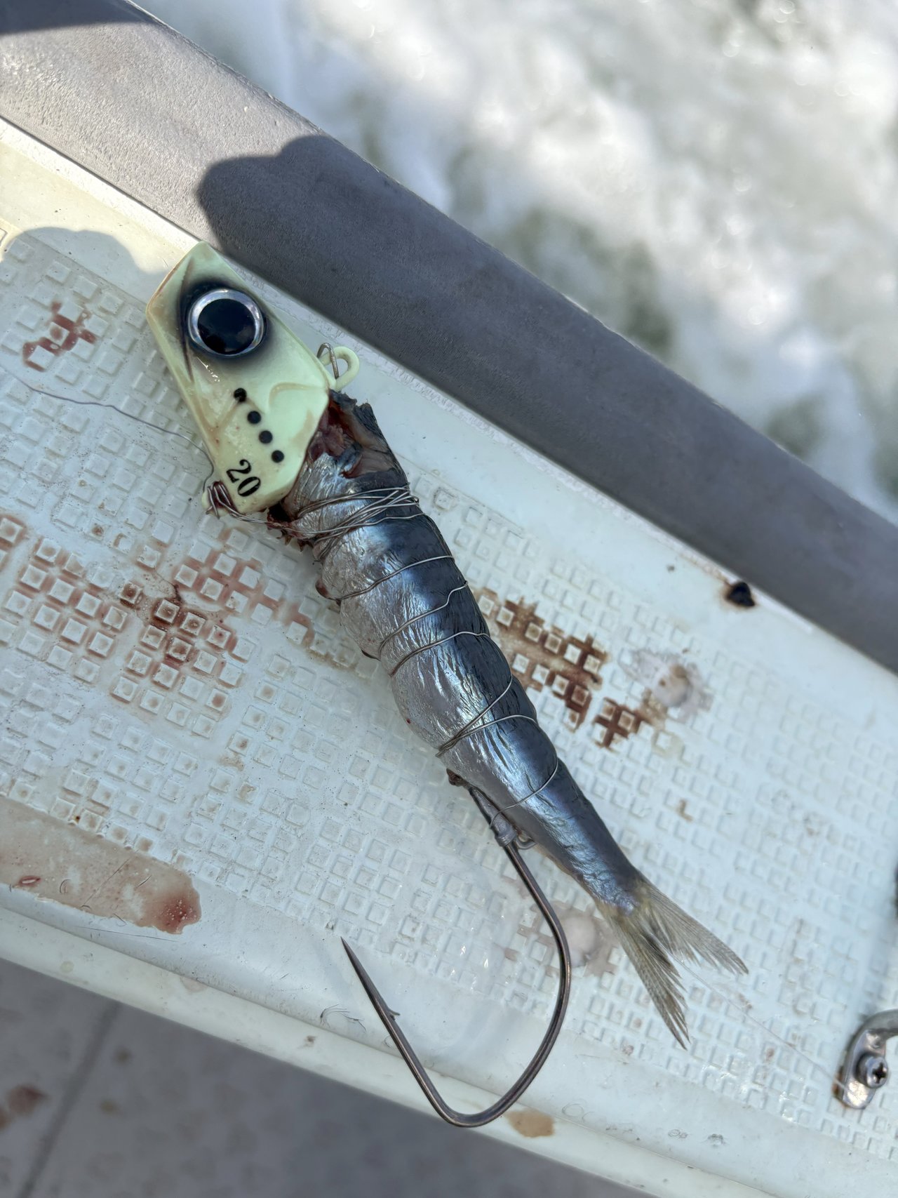 夏と言えばのタチウオジギングに戸田店三田と行って来ました!走水沖メインで50m~40mに反応が出ており私は100gタングステンジグメインに攻めましたがなかなか難しく当たりは少なめ。ショートピッチで比較的速めのアクションかフォールでの当たりがメインでした!終了間際に潮が変わり反応が良くなりましたが数匹追加して終了となりました。今の時期は浅場もやるので軽めのジグも是非お持ちください!
