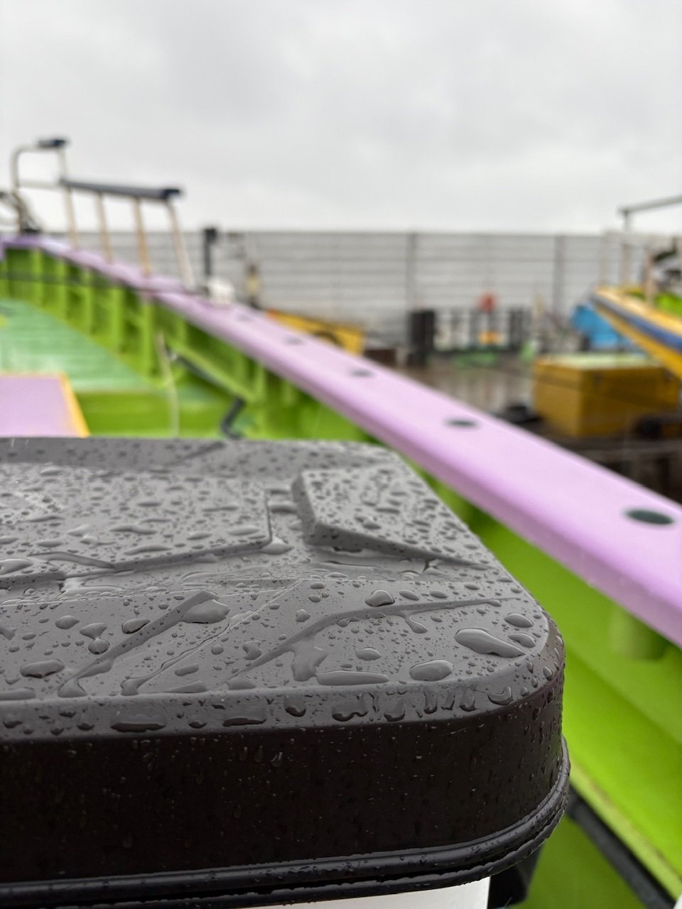 いざ釣り場に着くと激しい雨に打たれ準備の段階でビチョ濡れになってしまい、罰ゲームを覚悟しましたが、開始早々にトモ寄りの方が釣り上げ魚からの反応は一応ある模様。
