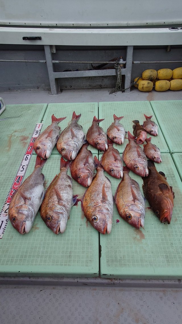 本命マダイも3枚釣れてゲストの太刀魚さんも来てくれ楽しい釣行になりました。