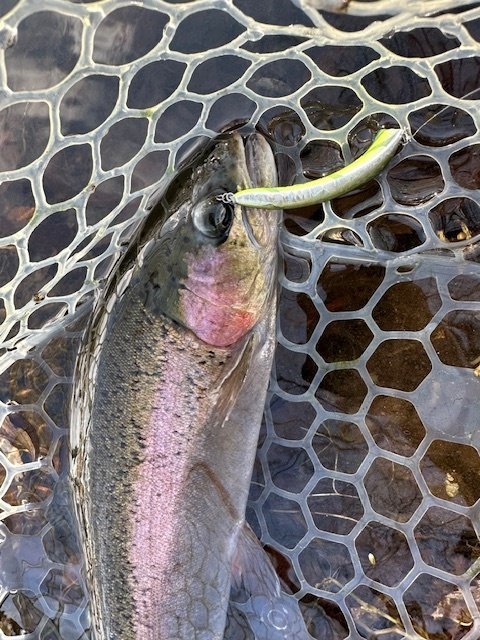 東久留米店吉田です。週末にある大会のプラに行かれるお客様に同行、久しぶりのFF中津川さんへ!水質はクリア。朝の水温は11℃台。参考になればと、それっぽいルアーに縛って釣りを開始。詳細は割愛させていただきますが、釣り座を移動しながら自分の練習も出来て楽しめました。今はニジマスの種類が普段と違うものも入っていて、背中が青く斑点が少ない銀ピカの種類がとても反応よく高活性でした。ルアーのカラー選択もちょっと変わってくると思います。当日は有名アングラーの取材も入っていて色々お話しが聞けて良かったです。