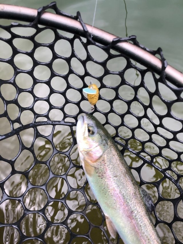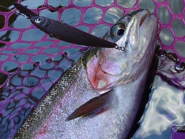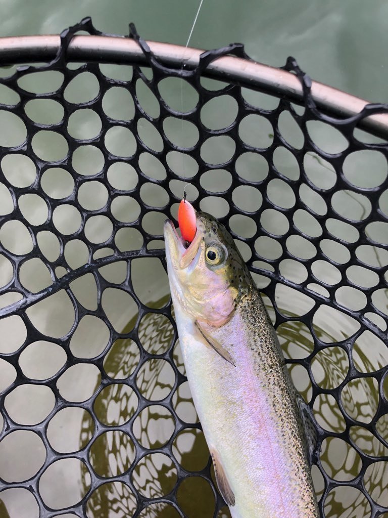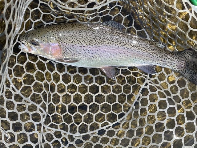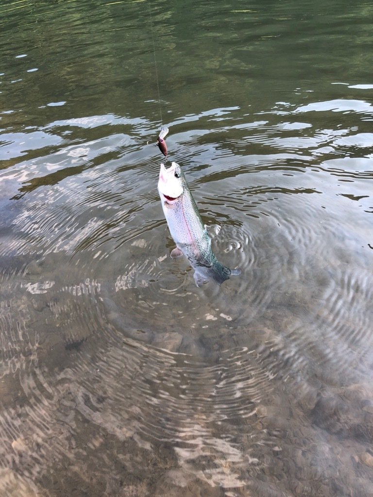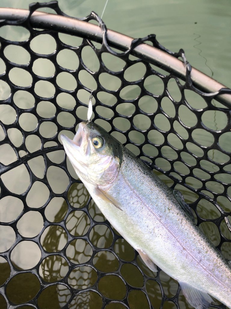 東久留米店吉田です。世間のお盆休み初日、お客様とフィッシュオン鹿留へ行ってきました!道中いつも山をいくつも超えて一般道で行くのですが、何故か鹿と出会う回数が多く急ブレーキ多めのヒヤッとドライブでした。大潮満月とか関係あるのでしょうか。さてポンドはそれほど混雑も無くいつもの鹿留。水温は20℃。気温も朝はそれくらいで涼しいです。開始1匹釣ったところで前夜寝る間も惜しんで巻いたラインがトラブル。巻き直しなどで1時間のタイムロス。8時には気分転換に朝寝(笑)。復帰後は表層クランクでポツポツ。この時期特有のテクニカル、嫌いではありません。放流ではブランド鱒の頂純サーモンもヒット!ネットインし写真を撮る瞬間に大暴れしジャンプ逃走(泣)。午後の放流はかなり高活性!表層で1時間ほど重めのスプーンで釣れ続きました!今後の大会に向け、いつもとタックルセッティングを入れ替えフロロとエステルでスプーンの練習をしました。日中は30℃を超えるので暑さ対策もしてお出かけしてみて下さい。