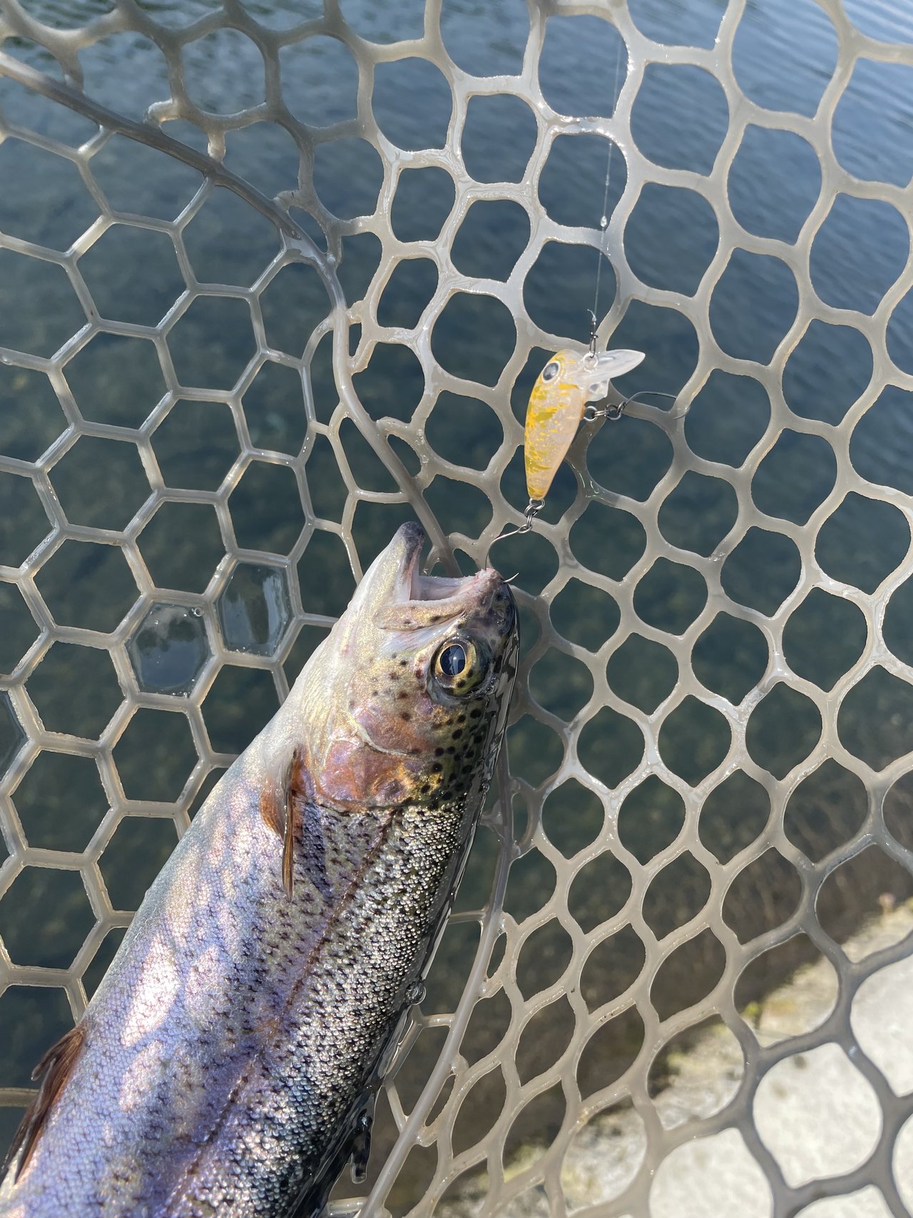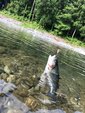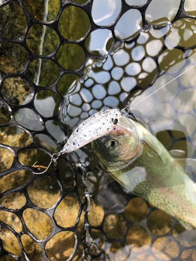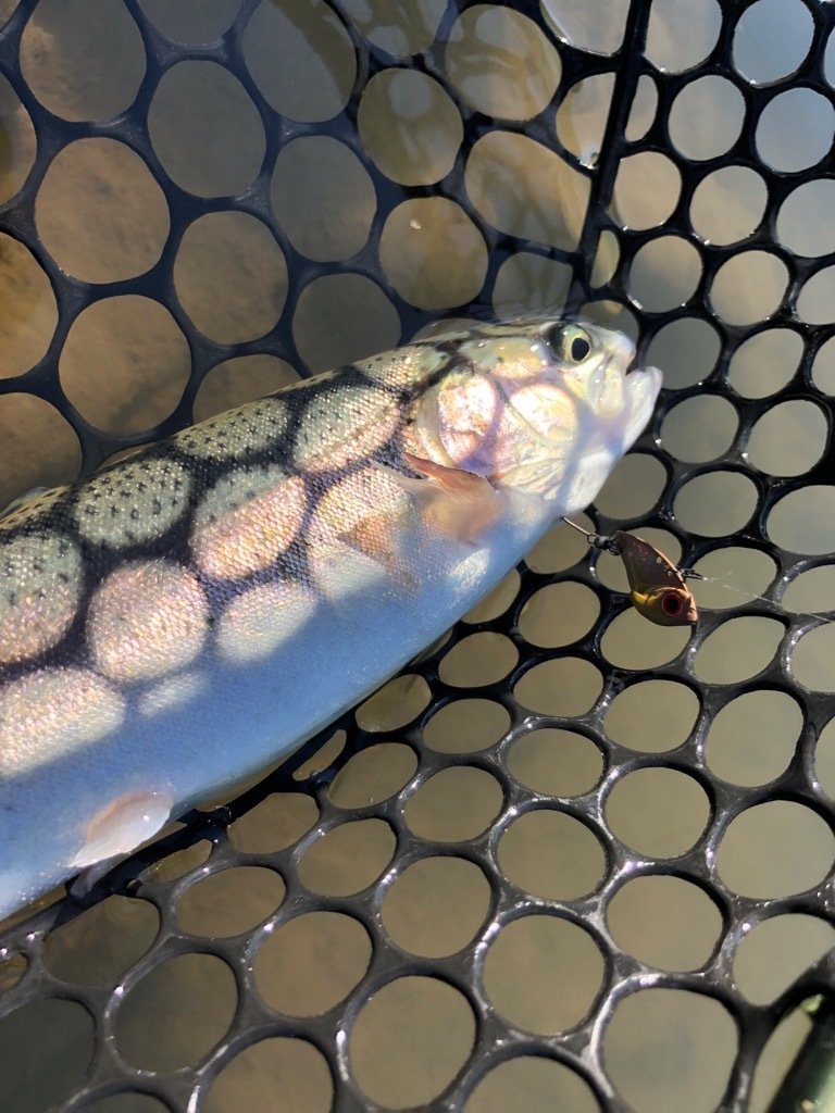 透き通る水にたくさんのトラウト、サイトフィッシングがしてみたいと思って、うらたんざわ渓流釣り場へ行ってきました。午後からなので半日券を購入、日差しは強いので反対側の日陰のポイントへ入る。区画ごとに無数のレギュラーサイズのほか数匹の大型が入っているのがよく見える。反応を見るためにモカDRから投げるとすぐにヒット。大型狙いはダブルクラッチ。しかし、警戒心が強くてすぐに逃げる。日が雲に隠れたタイミングでトップのにゃんプップでバラす。魚からの反応が全て見えるので楽しい。腕が未熟で釣果は少なかったですが、普段味わえないロケーションでの釣りに満足でした。