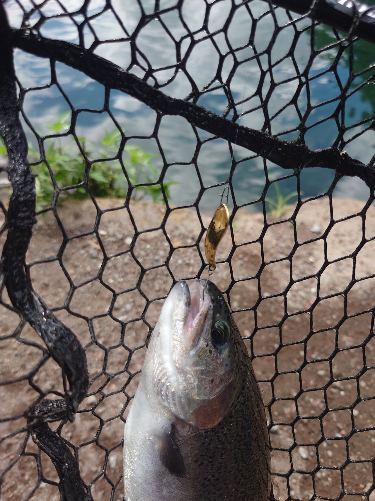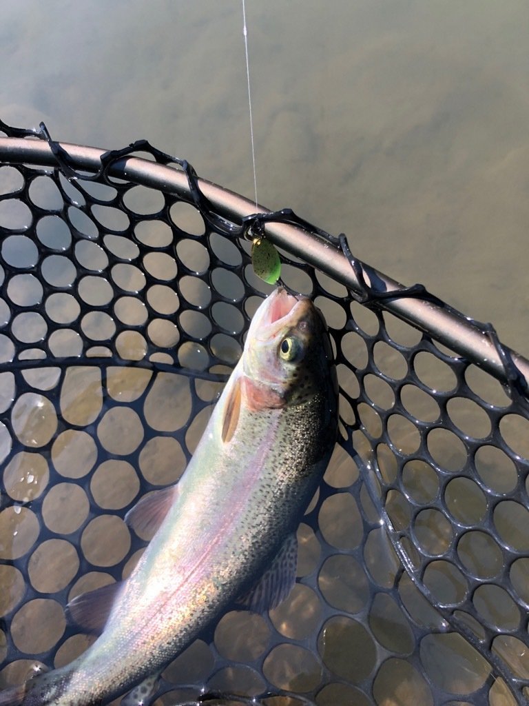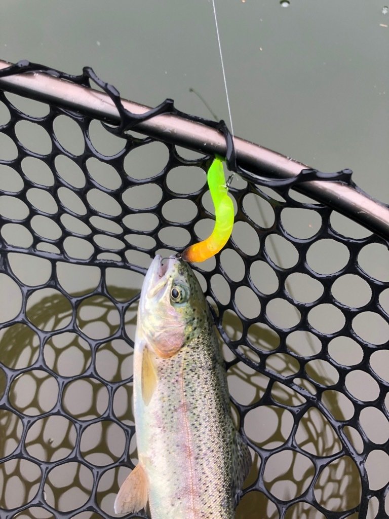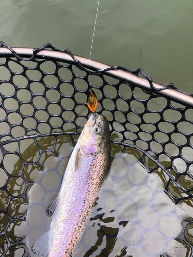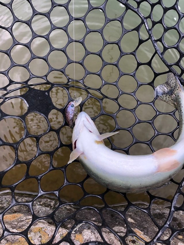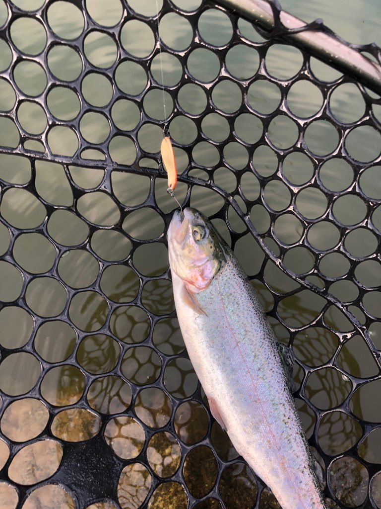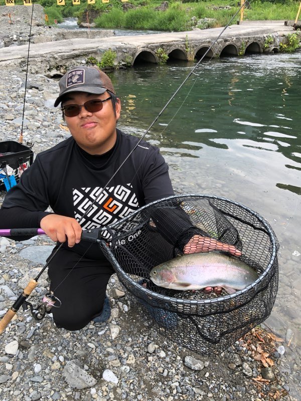 東久留米店吉田です。スタッフ稲森と奥多摩フィッシングセンターへ行ってきました!お昼まで半日の予定ですが午前券は無いので一日券を購入。ポンドへ向かいます。空いていたので贅沢に1つのポンドに1人でのんびりやります。状況の方は事前に聞いていた通りなかなかテクニカル。最初からマイクロスプーンを投入、表層を速めに引き、活性の高い魚だけ拾っていく作戦。カラーは明るめのペレット系に時々ピンク系を挟んでいく感じ。表層系のクランクも喰い切らず、団子魚やGJでポツポツ。稲森も同じように苦戦中。ラスト30分でストリームエリア(川)に入り、押しの強い流れにシンキング系クランクを極力ゆっくりドリフトさせてポツポツ拾い終了しました!時々大粒の通り雨でまあま濡れましたが心地よいくらいの蒸し暑さでした。良い練習になり楽しめました!