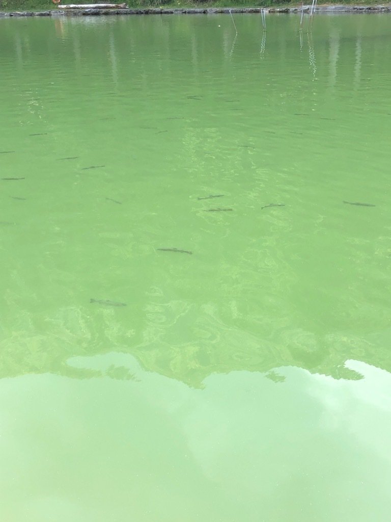 池周辺の清掃をして頂いたので藻の影響をチェック