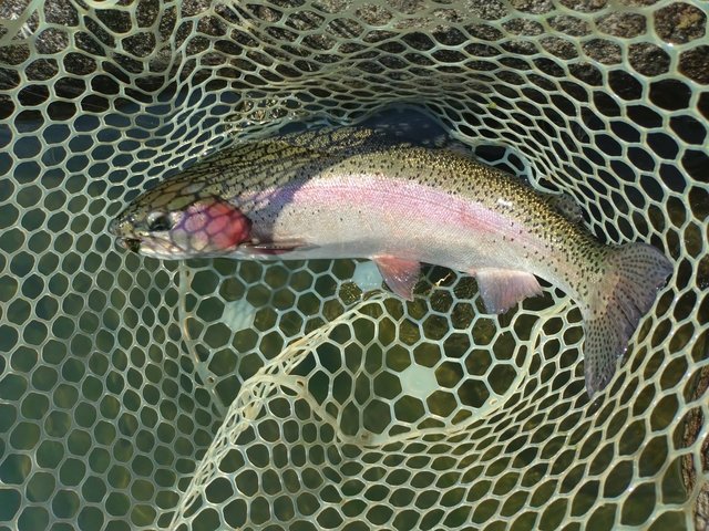 一旦気晴らしのためルアーに変更した直後、またもや大失敗をしてしまいました。先日タコ釣りの際タックルを変更したときドラグを閉め忘れあたふたしてバラシてしまったことの再現です。ヒットした瞬間スーパービッグなレインボー(推定60~70cmはあろうかと)が水面直下を下流・上流と走り回り成すすべなくフックアウトしてしまいました。その後放流タイムにルアーで30㎝ぐらいのが連発しましたが、やはりドライで釣りたいのでフライに変更しますが、ドライフライに出るもののフッキングせず終日魚に遊ばれている感じでした。