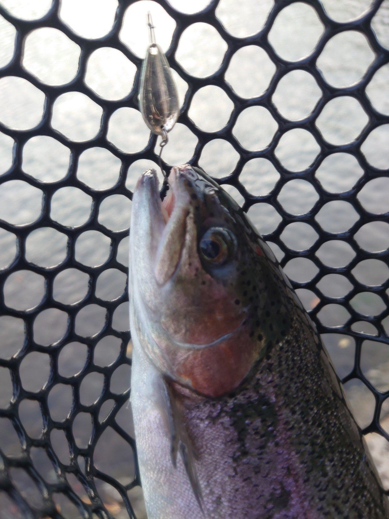 話題になっていたスミスの新製品ズルピーがポツポツアタり、コンディションの良いニジマスが釣れてくれました!