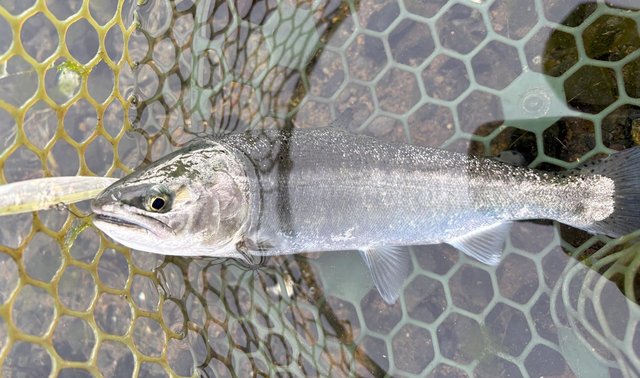 日中はサクラマスが好調でパニッシュやポーリ―、青銀系のスプーンが好反応。
