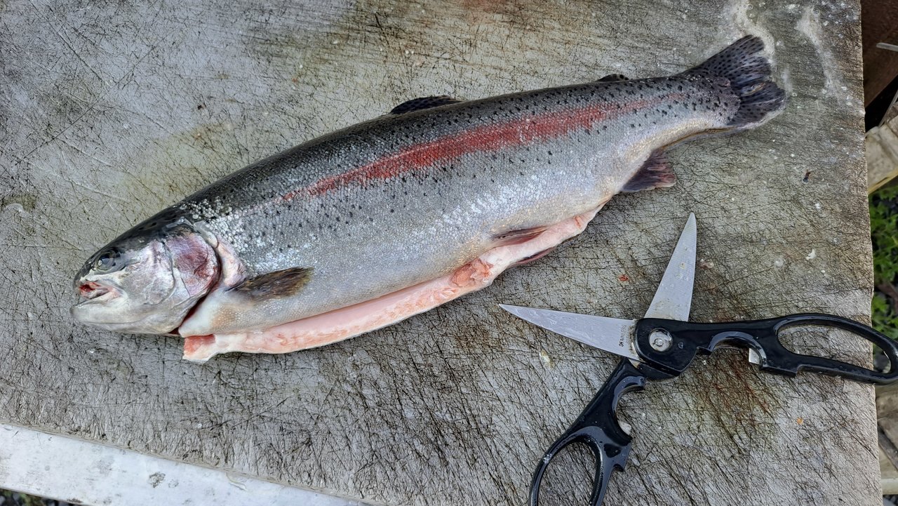 大物がいる3号池で開始しましたが、フライが合っていないのか、タナが合っていないのか、リトリーブが合っていないのかヒットがなく、1時間ほどしてやっとニジマスの25cm位のが釣れました。