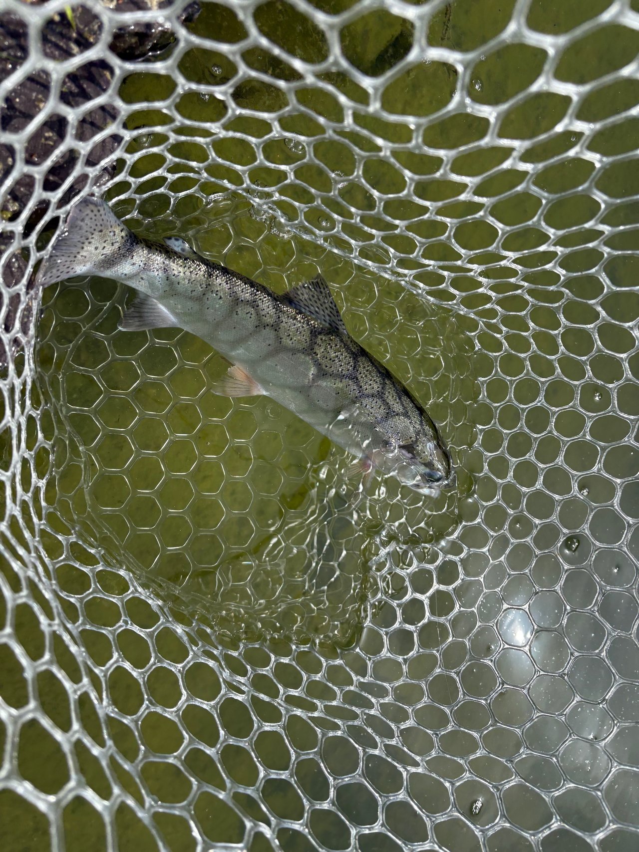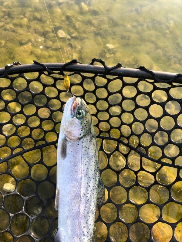 スタートはスプーンで始めるも反応を得られず、前回こちらを訪れた際に反応が良かったアンフェアを投げたら2匹のニジマスを釣ることが出来ました。