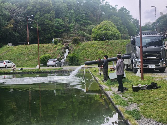 東久留米店吉田です。GW真っただ中ですがお客様みなさんとフィッシュオン鹿留へ行ってきました。連休に加えトラック放流の日なので朝からお客様多いです。今日は初めて大型専用ポンドのパインレイクも利用できるチケットを購入。相変わらず朝は手がかじかむ寒さ。もうしばらく8時までと15時以降は防寒対策は必須です。前日の大雨でポンドは濁り気味。イージーな展開を期待しましたがなかなかテクニカル。昼前に放流が入るまではボトムやクランクで絞り出す展開。大量放流後はすぐにスプーンで釣れだしますが、何せ上手な方々が大勢並んでいるのでみんなで分け合う形となり、まずまずの釣れ具合。その後落ち着いたところで、大型確保希望のお客様とパインレイクへ移動。魚影やチェイスはかなり見えます。お客様が何度かヒット&バラシがあり、その後無事に1本ずつゲット!自分は掛け損ないやバラシのみで終わりました。19時までのチケットだったので再び鹿留湖へ戻り連発して終了!高速はさすがに混んでいましたが、行きも帰りもいつも通りの一般道山越え(片道2時間弱)で全く渋滞なく快適でした。
