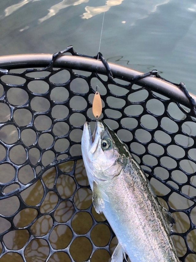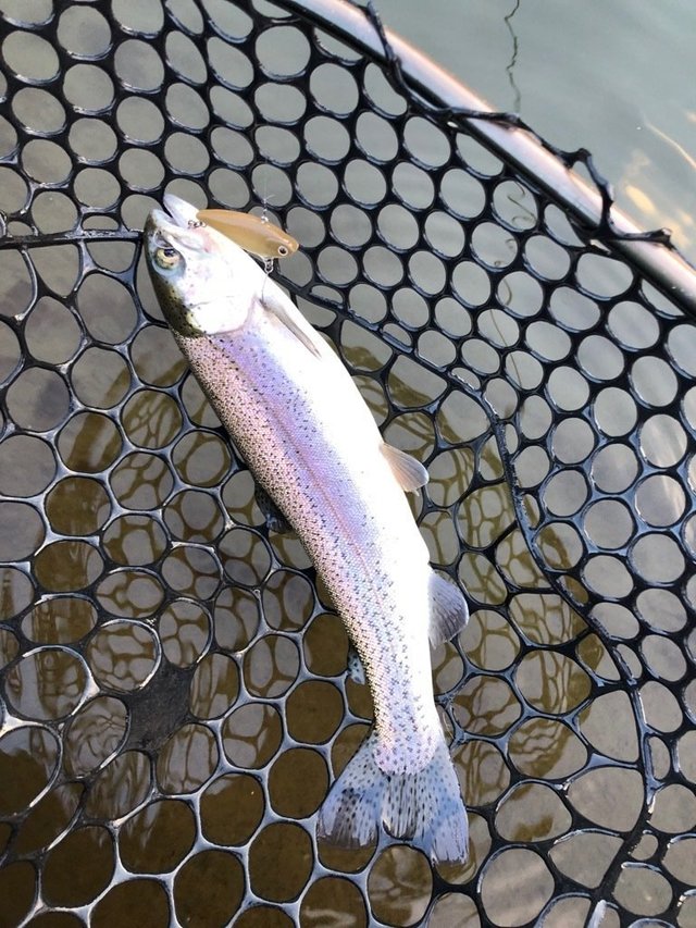 なので、表層~中層の釣りでやりました。スタートはミノーでサクラマス狙いで何匹か釣りその後はスプーンとクランクなどでポツポツ釣ることが出来ました、その後放流でしばし入れ食い状態を堪能してお昼タイムその後はクランク、ミノー、スプーンなど藻を避けながらポツポツ釣ることが出来ました。