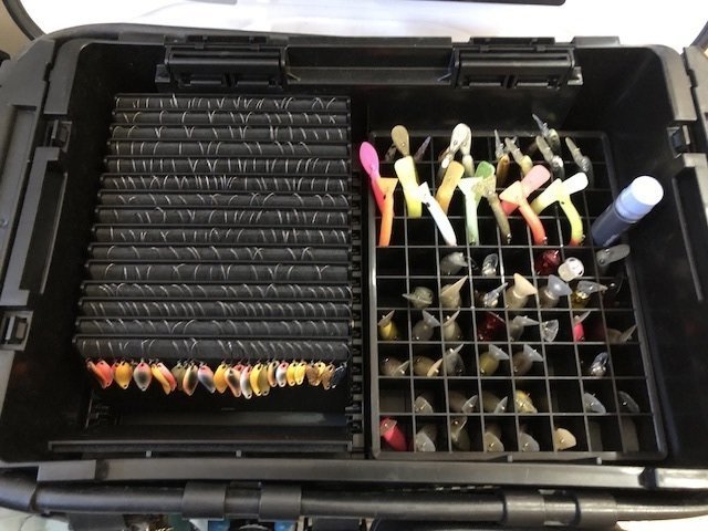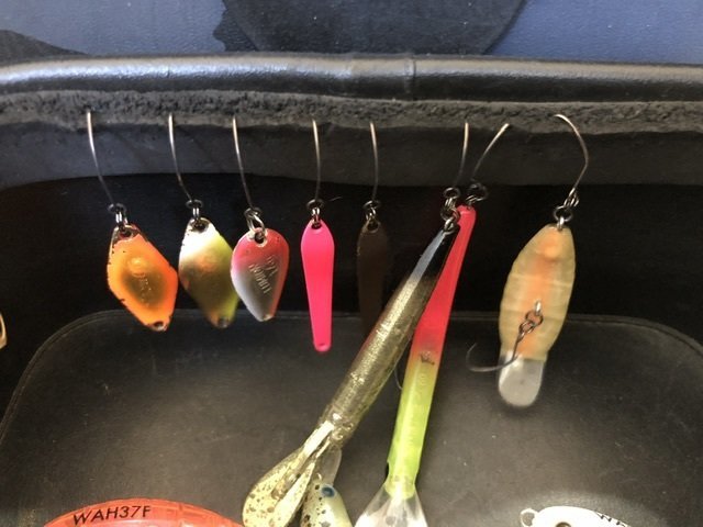 ドーナ2.0g、シャース1.9g、イーグルプレイヤースリムGJ50、さかさにょろ60FS、ワウ33F