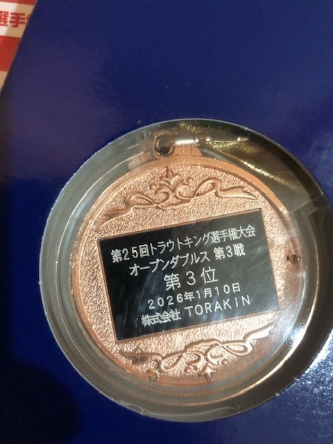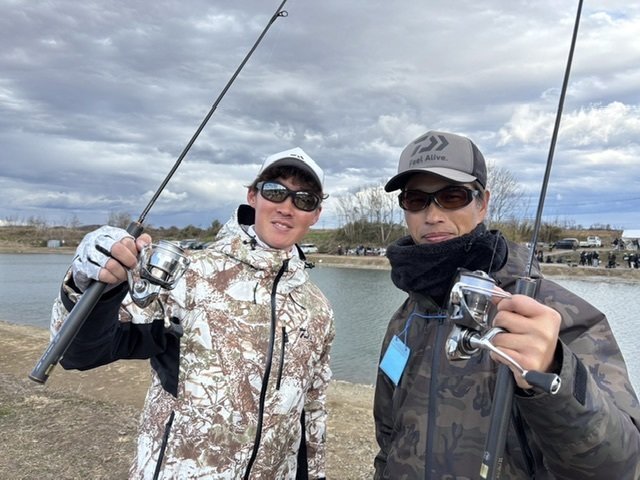 東久留米店吉田です。エリアトラウト日本一決定戦トラウトキング選手権オープンダブルス第3戦なら山沼漁場にDAIWA和田浩輝さんとのペアで参戦しました。間違いなく今までペアを組んだ中で最強の相棒です!しかもお互いオールダイワタックルで理解が共通しているのでとてもやりやすいです。浩輝さんは初のペア戦。もちろん目標は優勝してエキスパートクラスの出場権を獲得する事です。今回は110ペア220人が参加。予選はブロックに分かれ6チーム総当たり、上位2チームが準決勝進出できます。1試合は一人5分、ペアと入れ替わって5分、相手チームと釣り座を入れ替わって同じく10分。計20分という短い試合です。1試合目から先行の浩輝さんが好調!スプーン、浮上系ミノーで釣りまくりギャラリーからどよめきが起きるほど。後攻の自分は浩輝さんが本気で攻めた後ということもあり、またいつもスロースターターで体が温まるまでミスを連発。。。浩輝さんにアドバイスやネットインをサポートしてもらいます。本人プロデュースのロッド(自分の私物)を使いながら横で相手選手に聞こえないようアドバイスをささやかれながらなるべく同じ精度でやれるよう心掛け、釣れたら素早く正確にネットインまでしてくれる。これは何かの有料コンテンツかと思いました(笑)2試合目も勝利!しかし3試合目と5試合目を僅差で落としてしまい3勝2敗で混戦に。結果2位決めの1匹早掛けサドンデスへ。4人同時に釣りをして浩輝さんと自分が1投目で同時ヒット!何とか勝ち抜け。準決勝は3チームから1チームのみ勝ち抜け。ベテランペアと昨年優勝の有名ペアと同グループに。ピンチです。集中します。ここからスプーン担当とプラグ担当に分かれます。相談の結果自分がスプーン担当、浩輝さんがプラグ担当に。1投目からようやく体が温まった自分のスプーンが炸裂!リードして浩輝さんもクランクで好調に数を伸ばし9-8-7で何とか逃げ切り!とうとう決勝進出です!勝ち抜いてきた15チームから上位2チームがエキスパート部門出場権獲得。前半はあまり良い釣り座に入れなかったもののメンタル的にはピークを迎え、魚の動きが手に取るように分かり釣れる気しかしません!またも1投目から沖の高活性魚を狙った自分のスプーンが炸裂!3本で浩輝さんにタッチ、ミノーが不発もシンキングクランクで連発し前半9本2位タイで折り返します。後半も釣り座的にはいまいちでしたがまたも開始から同じスプーンで4連続ヒット!周りがザワザワして気持ちよかったです(笑)単独首位で浩輝さんへ!2本追加し15本まで伸ばしますがラスト5分で上流側の釣り座のペアが続々と数を伸ばし並ばれます。こちらも厳しくなった時の奥の手を2手残していましたが自分のアドバイスが足りず出すタイミングを逸してしまいそのまま終了。2位に入れたと思いましたがもうひとペアにもまくられていて結果は3位。。。エキスパート進出ならず。昨年のなら山シングルスと先月の宇都宮地方予選に続きまたも1匹足りず。そのまま表彰式で呼ばれるまで2人とも動けませんでした。結果的には残念でしたが110チームの中で3位入賞は良く頑張れたと思います。イベントやテストで多忙を極め、その中でもSNSで「伝える」活動をしっかり行っている浩輝さん。なかなか練習の時間も取れず苦戦していたので、なら山の経験がある自分が一緒に上がるんだ、と優勝しか考えずに強い気持ちで自己暗示にかけてやってきました。「決勝で会いましょう」と誓ったお客様ペア2チームもしっかり決勝へ上がってきていました!あと少しの詰めが足りませんでしたが言霊ってあるんだな、と思いました。表彰式、入賞者インタビュー(YouTubeで見られます)を終え、待っていてくれたお客様たちと食事、地元の釣具屋巡り、温泉に入り現地泊。翌日のシングルスに向けて備えました。