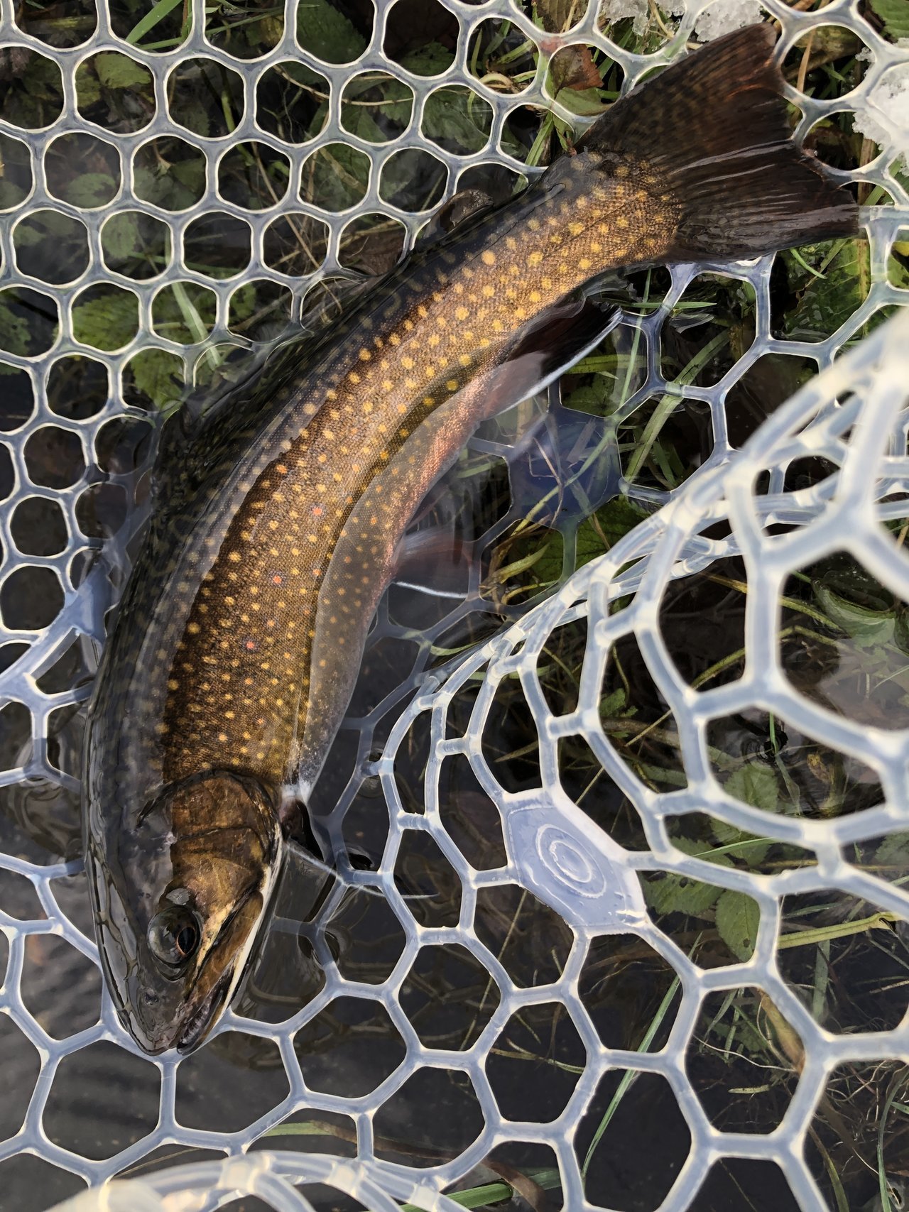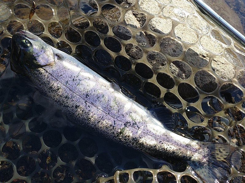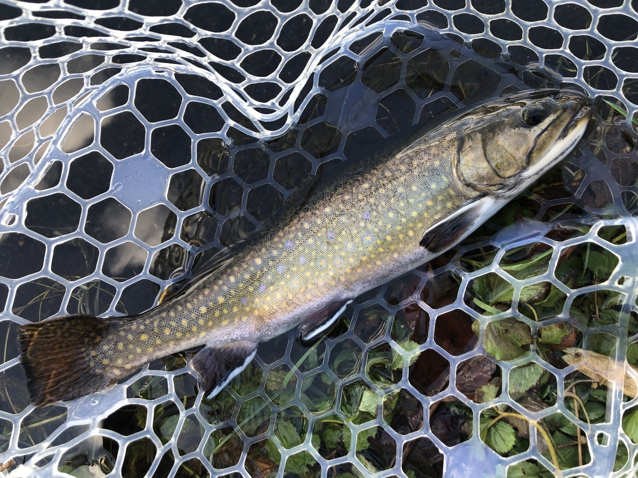 気分を変えてミノーで遊んでいるとイワナを始めブラウンやブルックなど、色物が反応して思わずニヤリ。日が落ちる前に風が強くなったので納竿としましたが、ヒレピンのトラウトたちに遊んでもらって楽しい釣行となりました。