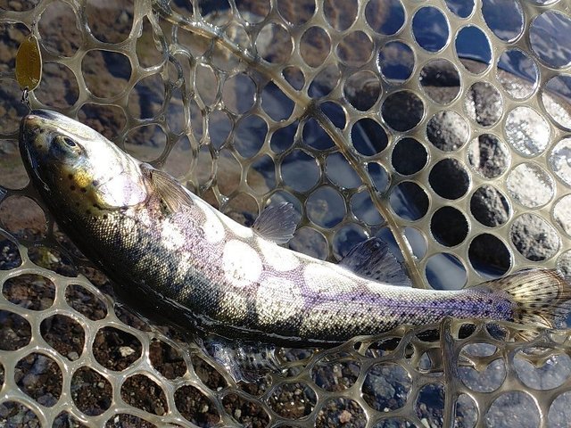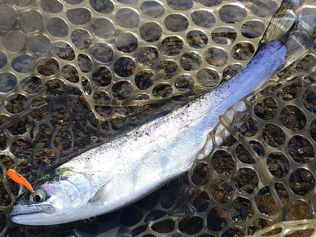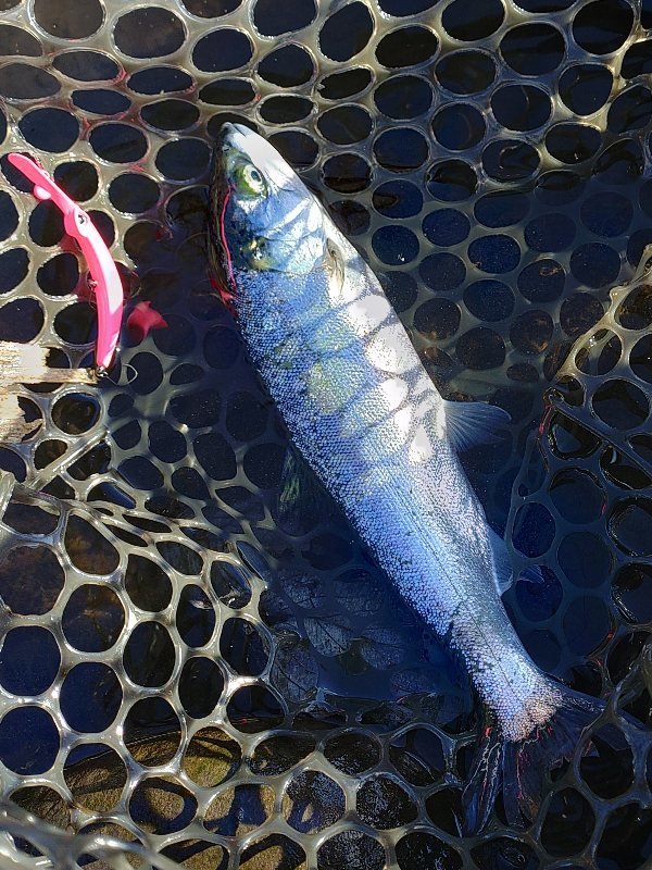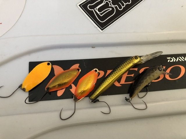 曇りで表層付近が良かったです。魚のクオリティも良く引きも楽しめました。メッキ系のスプーンが反応良かったです。