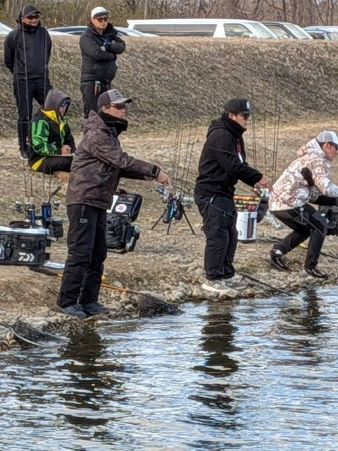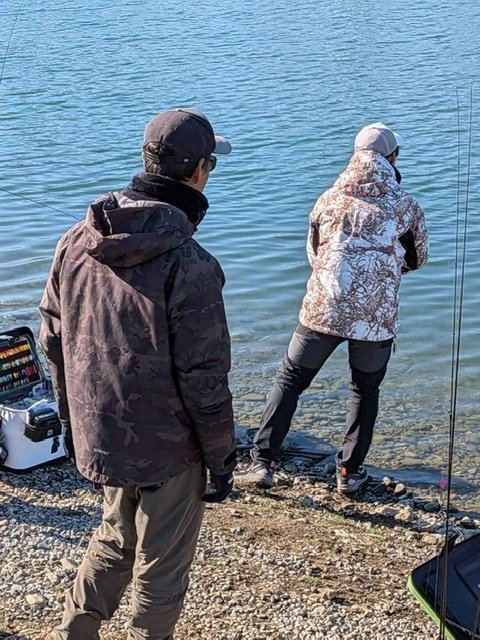 ダブルスに全振りしていたのでなかなか一晩ではメンタルと体力を回復することができず、前夜準備をする気力も全くなかったので現場についてから。現地泊した為30分程で到着、楽です。受付をしてから急いでリーダーを結びなおしとフック交換。仲間のお客様にも励ましてもらい、また前日のペアの浩輝さんとも励まし合い少しずつ戦えるメンタルを作っていきます。仲間って本当にありがたいです。参加者は約240人、なのに抽選で決まった1回戦の対戦相手はお世話になっているお客様。。。しかも前日も決勝に残っていた強豪です。開始放流魚の獲りあいで前半終わり7-7の同点。後半はお互い手前の回遊にミノーを当て行く釣りにシフト。自分は前日目に焼き付けた浩輝さんの釣りを意識、ほぼノーミスで8本キャッチ!15-12で勝利!カラーの差も出たのかも知れません。勝者組2回戦は4人から1人抜けの鬼門。開始から非常にテクニカルな展開。沖は反応無く、時折入る手前の回遊をほかの選手はミノーで拾っていきますが自分は前日の釣りからパターンを模索。中層クランクで2本キャッチ、最終ローテまで最下位でしたが曇ったタイミングを見逃さず浮いた魚をワウ33F当店オリカラのプレマスでキャッチ、首位に3人が並びそのまま早掛けサドンデスに。そのまま同じルアーで1投でキャッチし勝利!準決勝のころには爆風に。前日からの疲労と50肩の痛み、強風でキャストが安定せず何度も回収し投げ直しが続きます。それでも前半は放流魚がまずまず獲れ同点で折り返し。後半は魚を見失ってしまい8-9の1本差で敗戦。風にあおられてキャッチミスした前半の魚が痛かったです。決勝は審判をしながらまともに立っていられないくらいの暴風でしたがみなさんそんな中でもしっかり釣っていました。敗者組決勝にお客様が2名残られていましたが残念ながら上がれずでした。2日間行動を共にしたお客様と浩輝さんと帰りにとんかつを食べながらお疲れ会をして帰宅しました。今後もエキスパート部門出場を目指して体のケアをしながら参加したいと思います。参加選手の皆さん、運営の皆さん、釣り場さんお疲れさまでした。ありがとうございました。