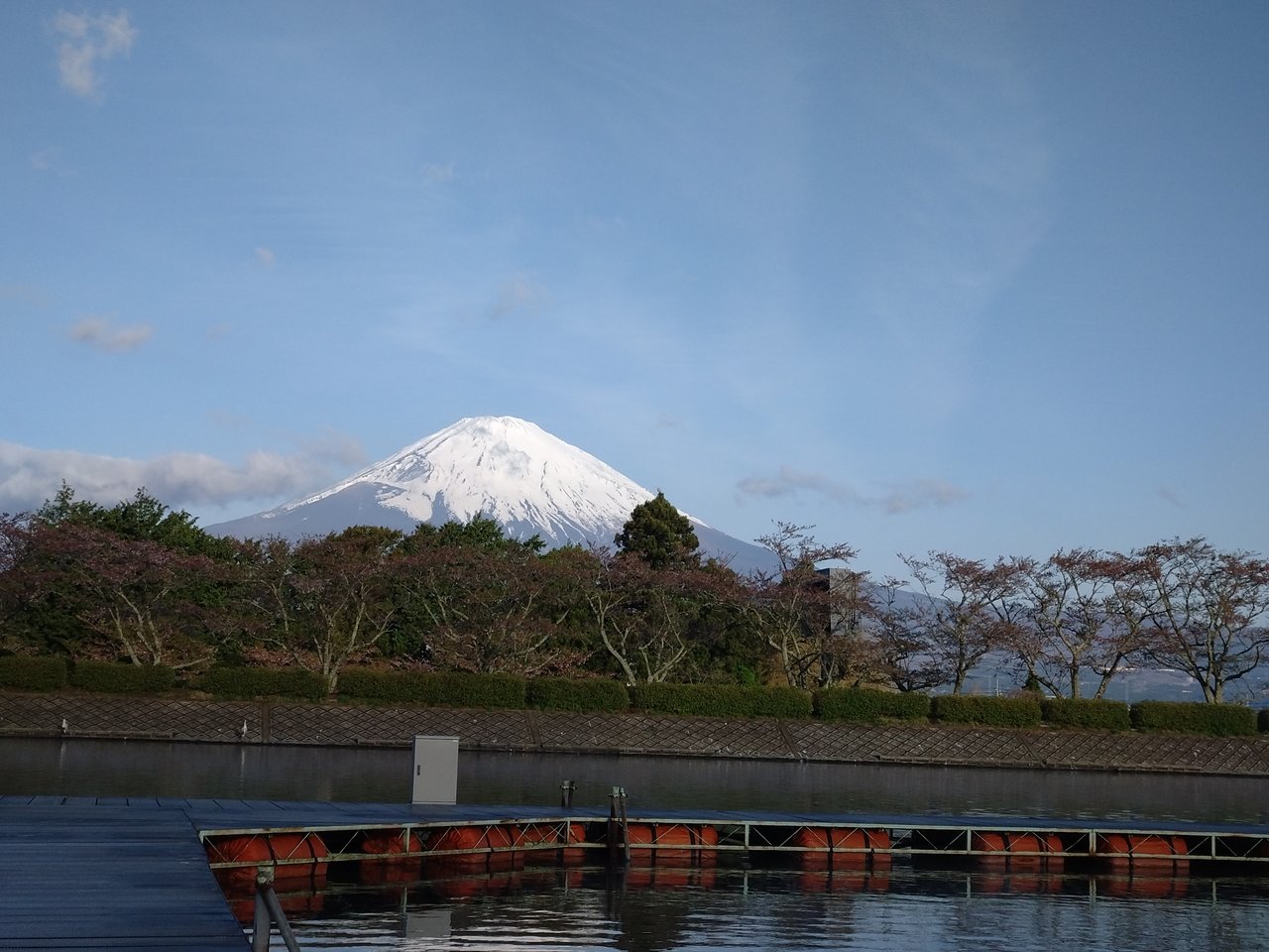 朝一から晴れて富士山もきれいに見え、天気予報では風が強いとのことでしたが、まだ風がなく穏やかな湖面でした。
