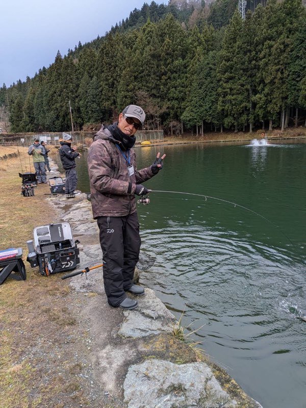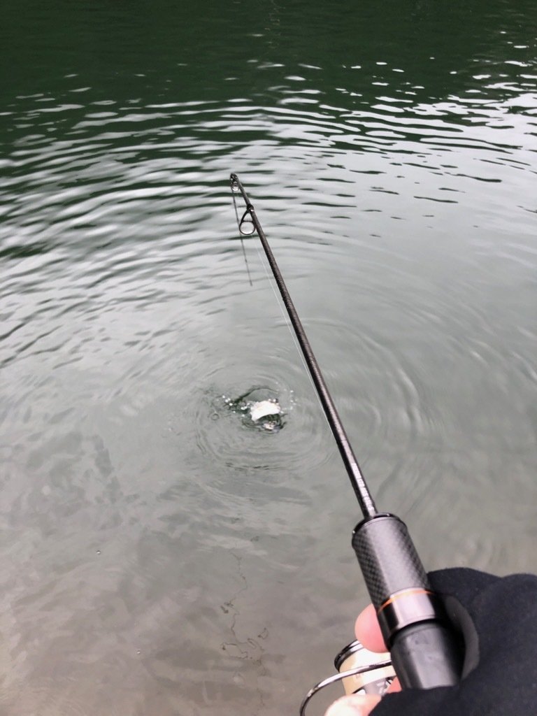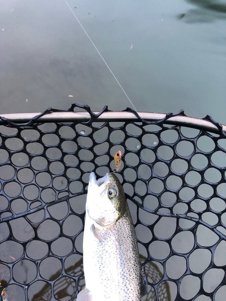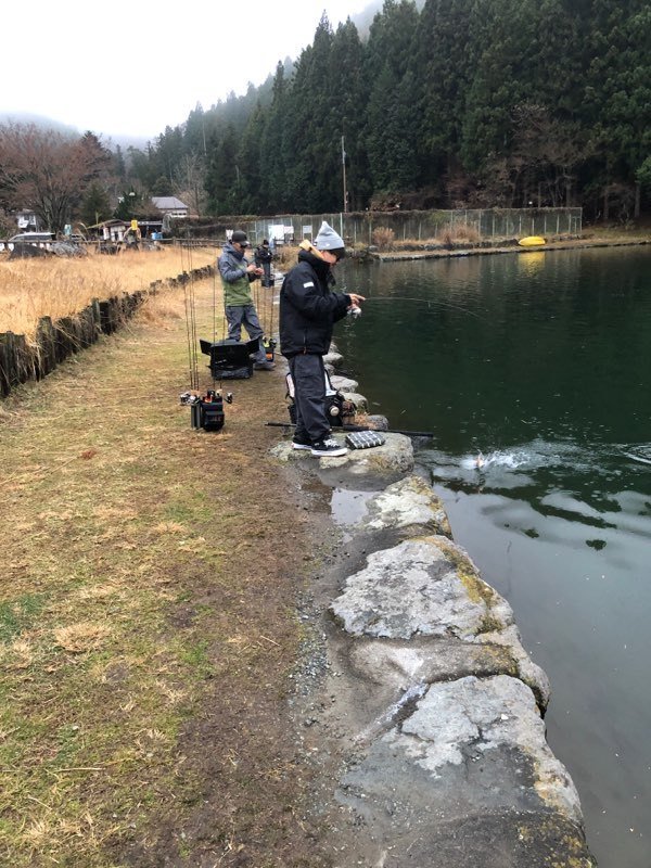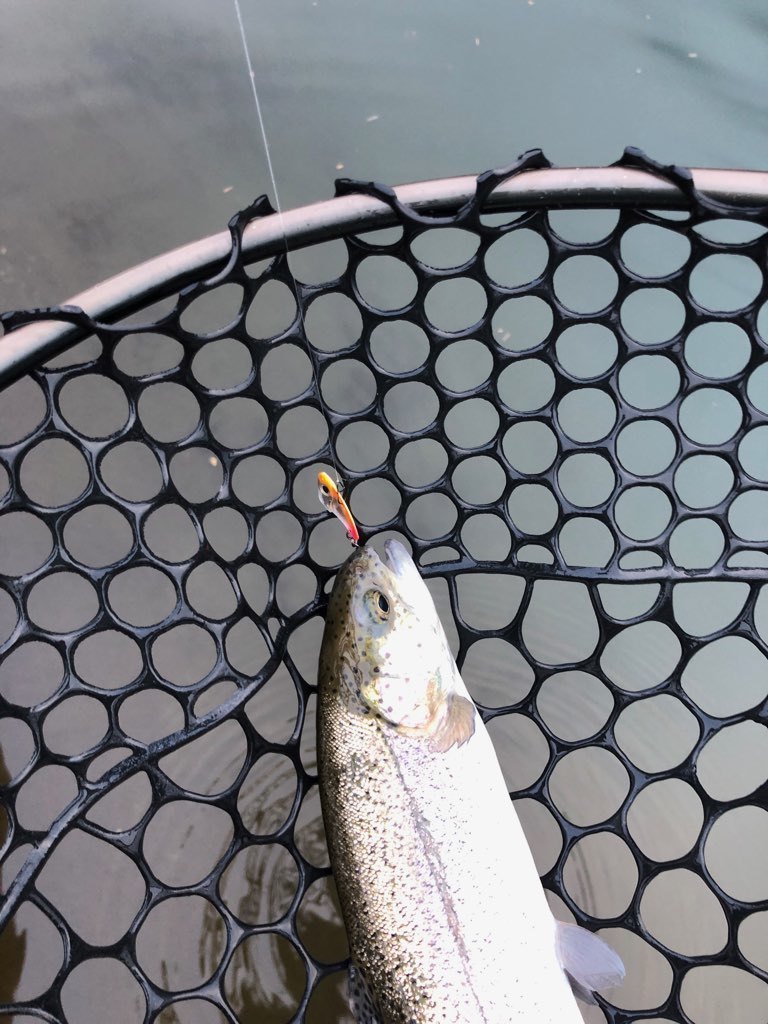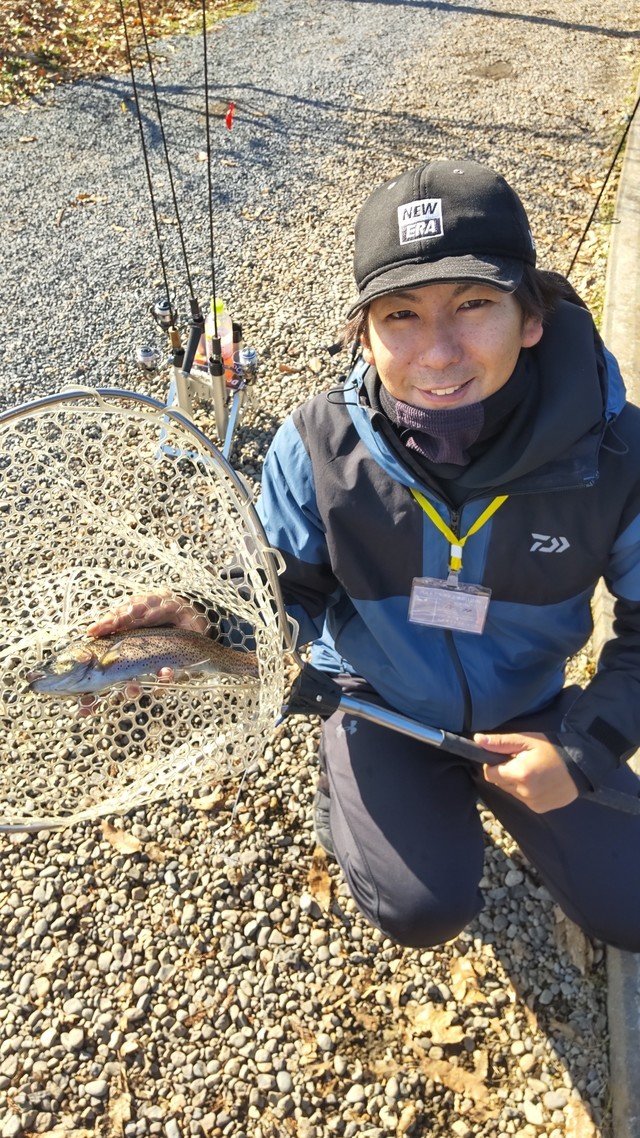 東久留米店吉田です。雨が残る中、いつもの鹿留ゆっくり目のデイタイム券利用でお客様と練習です。しっかりゴアテックスの防寒着を着用!日曜日ですが雨の為流石に空いています。鹿留湖は水車が修理され、2個になっていました。流れの中が有利ですが個人的には流れの無い所で(有利じゃない釣り座で)練習したいです。開始直前に午前の放流が入りいきなり放流練習からスタート。ボトムベタベタをデッドスローで丁寧に引くと連発です。その後中層に浮いたので軽め1.6gスプーンやクランクで攻略。ボトムももちろんやります。わりとイージーに釣れます。午後から晴れる予報でしたが曇り。午後放流はちょっとテクニカルでしたがまずまず。ローライトのおかげでずっとアタリは途切れず良い練習が出来ました!朝の道中は雨で油断していましたが凍結箇所がありスリップ。スタッドレスタイヤだったので事なきを得ましたがノーマルタイヤだったら。。。