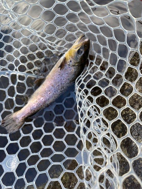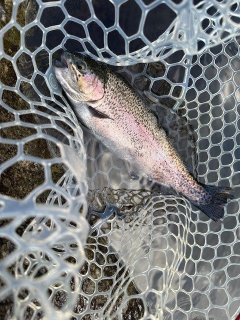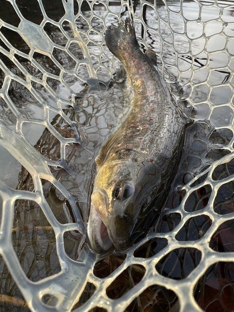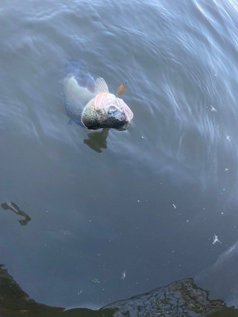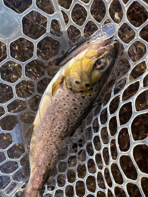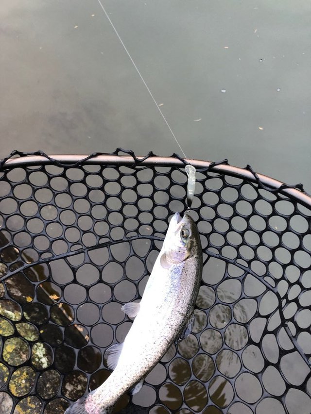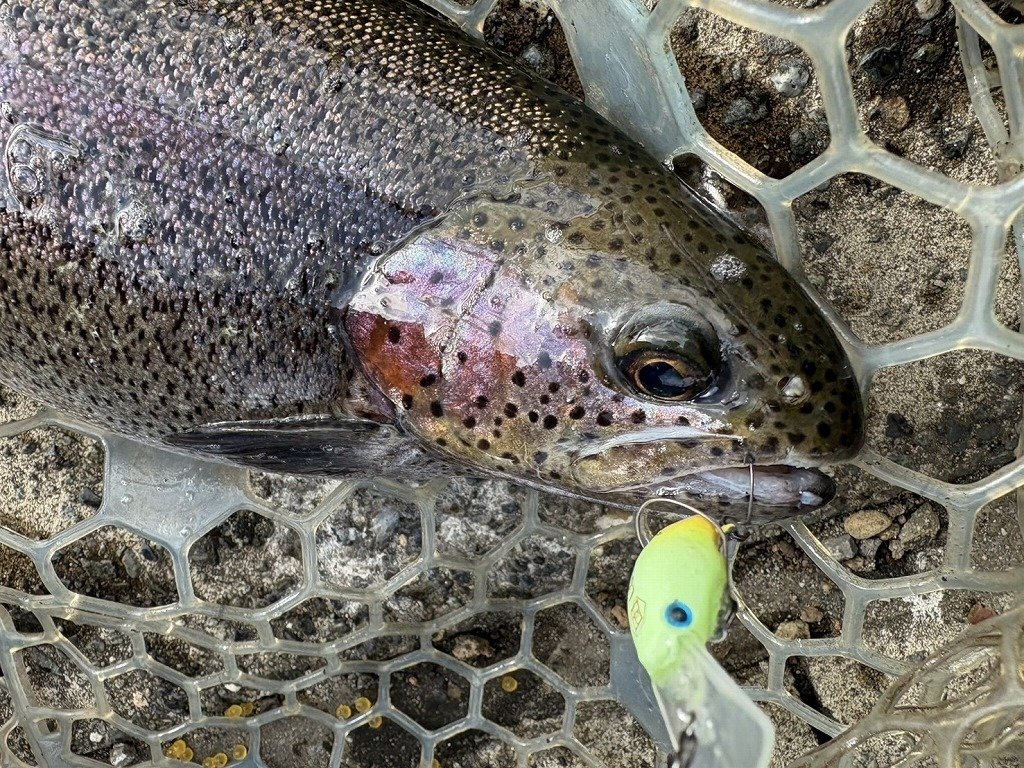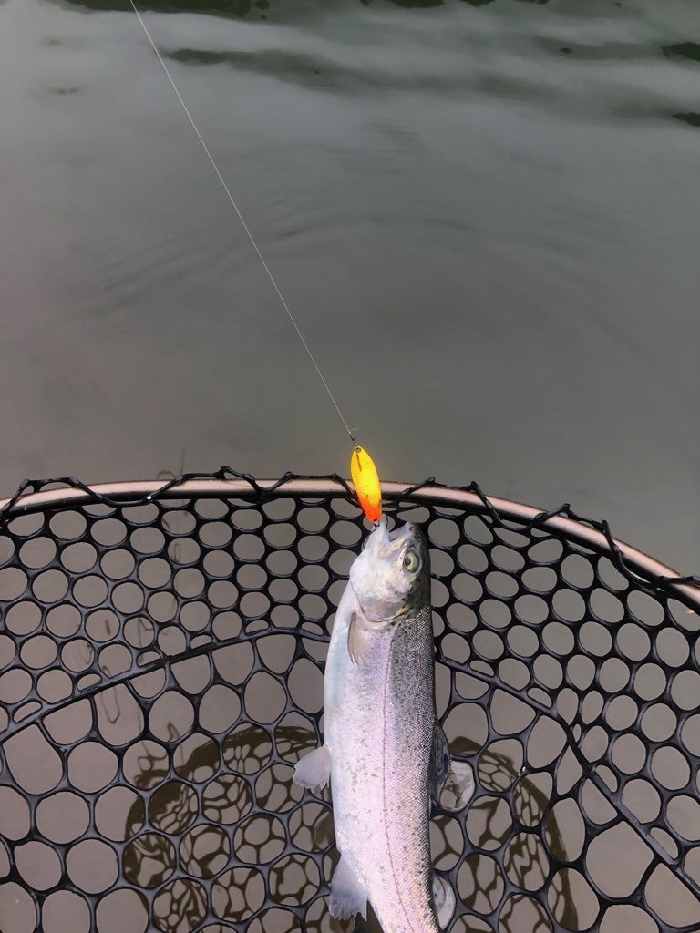 東久留米店吉田です。雨が残る中、いつもの鹿留ゆっくり目のデイタイム券利用でお客様と練習です。しっかりゴアテックスの防寒着を着用!日曜日ですが雨の為流石に空いています。鹿留湖は水車が修理され、2個になっていました。流れの中が有利ですが個人的には流れの無い所で(有利じゃない釣り座で)練習したいです。開始直前に午前の放流が入りいきなり放流練習からスタート。ボトムベタベタをデッドスローで丁寧に引くと連発です。その後中層に浮いたので軽め1.6gスプーンやクランクで攻略。ボトムももちろんやります。わりとイージーに釣れます。午後から晴れる予報でしたが曇り。午後放流はちょっとテクニカルでしたがまずまず。ローライトのおかげでずっとアタリは途切れず良い練習が出来ました!朝の道中は雨で油断していましたが凍結箇所がありスリップ。スタッドレスタイヤだったので事なきを得ましたがノーマルタイヤだったら。。。