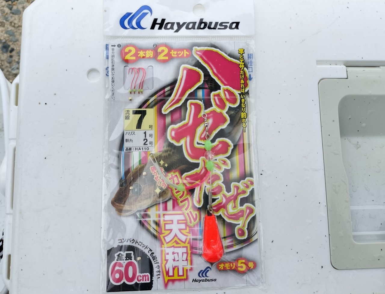 ロッドとリールはいつも使うバス用スピニングロッドの柔らかめでラインは細めを用意。ふく式に3.5gシンカーと針を付けて準備完了。餌は手軽なハゼホタテを使用。