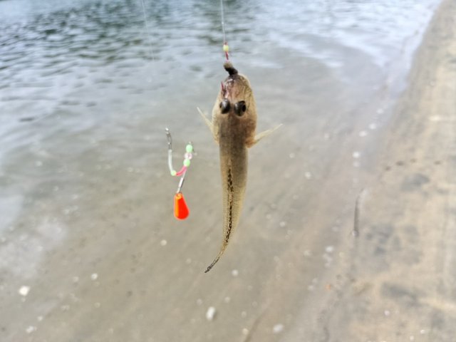 オモリを追加し本命のハゼが釣れました。