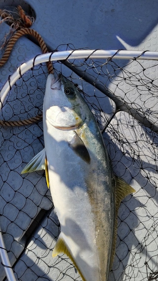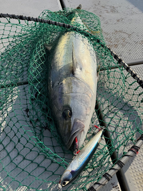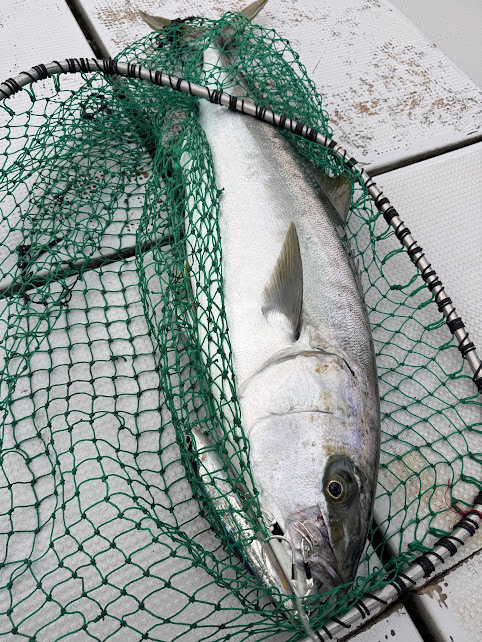大原港山正丸さんへ行ってきました。朝は寒いですがこの日は水温が高く日中の沖は過ごしやすい陽気でした。最近サンマの群れを追いかける青物もいるようですがこの日は全く見れません。根回りもベイトの反応あまりなく魚はどこへ行ったのか?無の時間が長かったですが、運よく根回りで貴重な船中1本のヒラマサをキャッチできました。菜の花ジグのおかげで助かりました。また浅場では90gの菜の花ジグをキャストしてちびスマ。深い場所では風と流れが逆で上潮が早い強烈な2枚潮でジグが落ちにくい中、菜の花ジグ220gと290gで2回ヒットしたものの惜しくも外れてしまいました。この時期はポイントに合わせて色々なサイズを使う必要があるので用意が必要ですね。