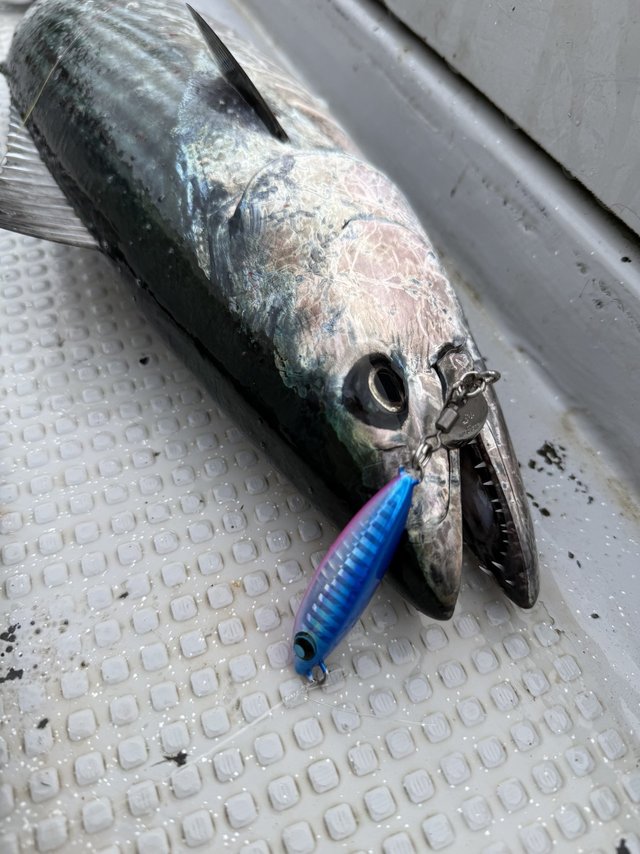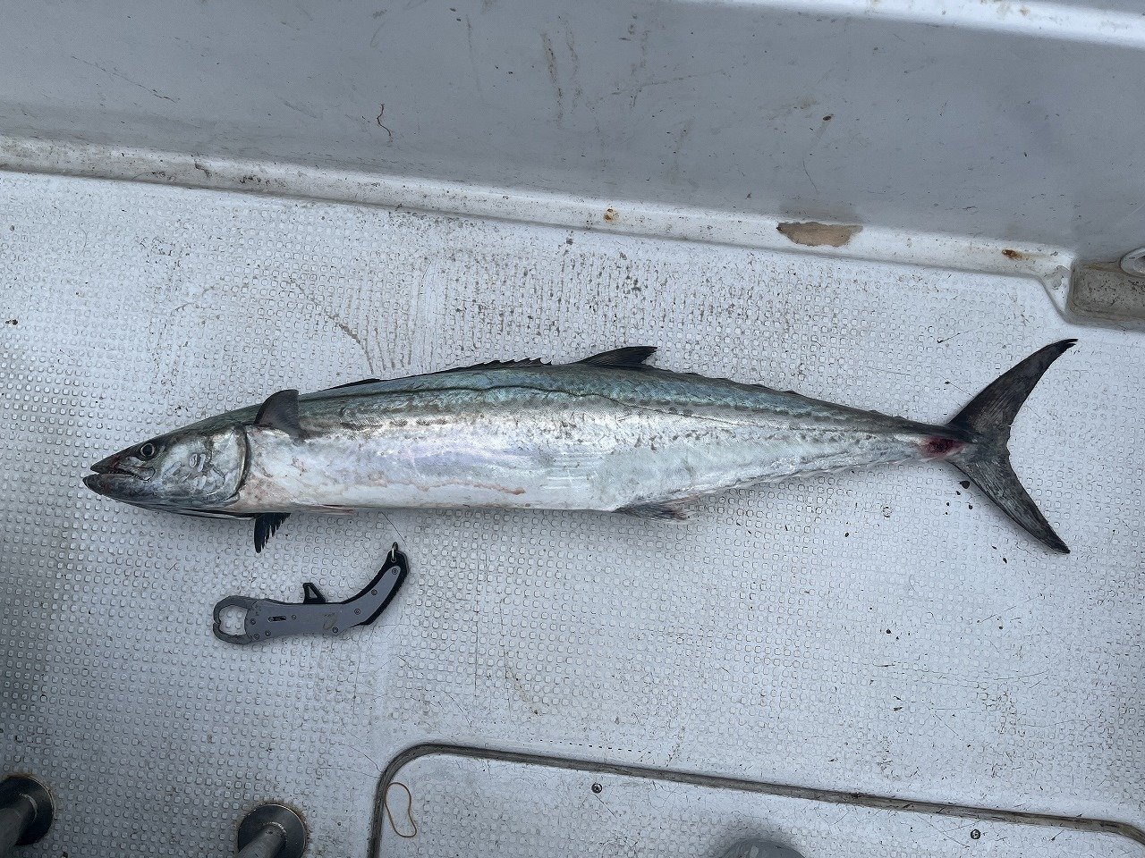状況によってはキハダ・カツオも狙いたいところでしたが...残念ながら本日攻めたポイントから少し離れたところに群れが居たようで、釣ることは叶わず。帰港したのちにサワラのサイズを測ってみると、96cm!メーターサワラではありませんでした。
