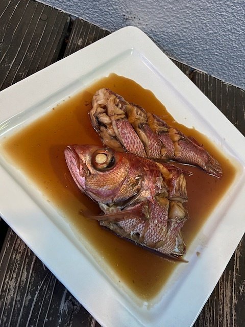 沖縄の友だちに誘われて、「アカマチ」釣りへ行ってきました。「アカマチ」は沖縄三大高級魚の一つと聞いていたので、あまり釣りに行かない私もかなり釣り欲が沸いていました。仕掛けもタックルもすべて用意してもらっていて、私はハリにエビを付けてオモリと仕掛けを落として、少しシャクってコマセをばらまき、アタリがあったら電動のボタンを押すという作業。同行した友人たちは、いきなりデカいヒラマサやアカマチが続々と釣れていく中、アタリがわからない。。でも、やっていくうちに段々アタリがわかるようになり、「レンコダイ」をたくさん釣ることができました。結局、自分で「アカマチ」を釣ることはできなかったけど、友人宅で美味しく調理してもらって食べることはできました。これからもう少し涼しくなってからが良く釣れるとのことなので、またリベンジしたいと思います。