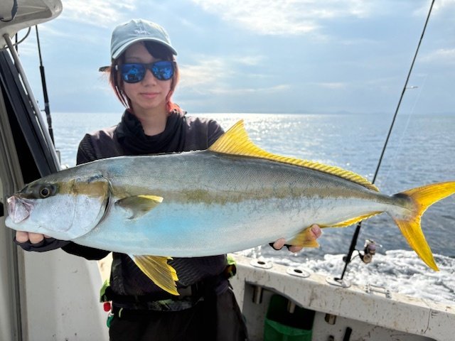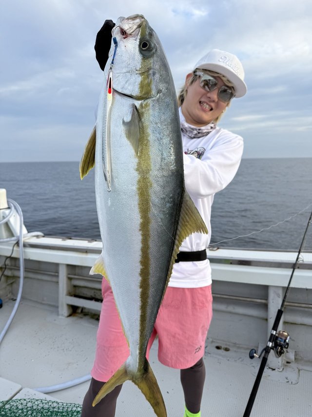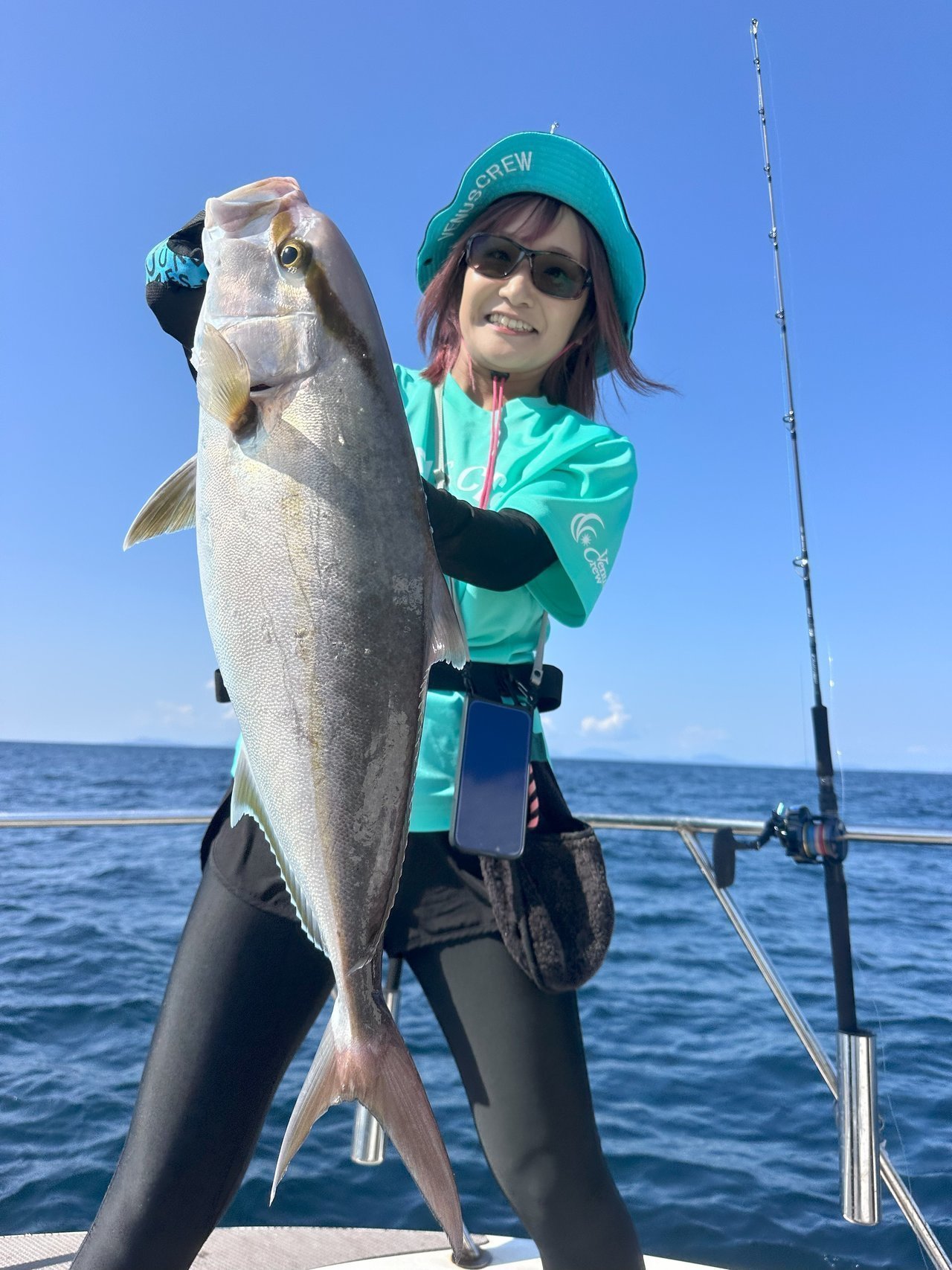 秋と言えばジギングですよね!運動不足でパワーに自信はないけど、大物ゲームがしたくて行って来ました!今回ダイワさんにお借りしてソルティガのベイトリール「22ソルティガ15L-SJ」を使用したのですが、スピニングリールよりも圧倒的なパワーかつ巻き始めもスムーズで魚とのファイトも楽々!休むことなく1日ジグをシャクリ続けることが出来ました。ベイトリールすごい!「アウトレイジJ62B-3」も適度な張りがありつつしなやかで、ショートジグもロングジグもワンピッチジャークしやすかったです。