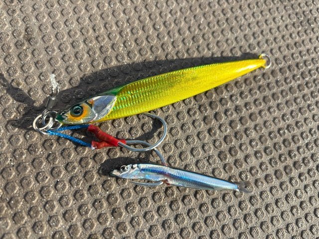 ジギングメイン、所によりキャスティングの編成で釣りしましたが、この日は凪過ぎてジギングに軍配が挙がっておりました。ジグは終日、FCLLABO製の「SU-SU」と「FT」の130~180g。どちらも出したいアクションの方向性が形状にハッキリでており、贔屓目抜きで良いジグだと思います。