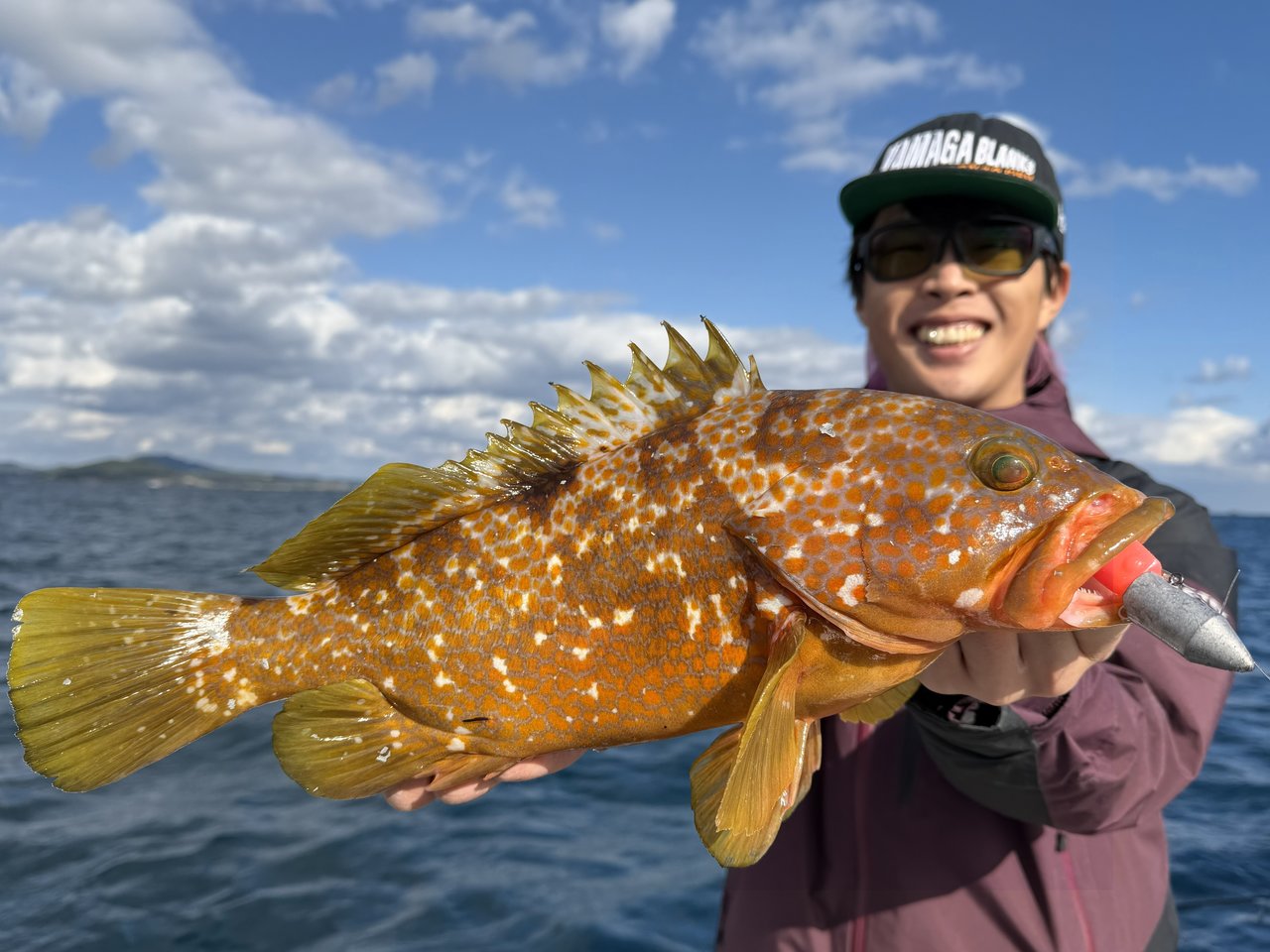 少し前に別組がすでに実釣会を行っておりマハタメインで釣れていたので底中心に狙ってみようと開始して1投目の3シャクリ目で明確なアタリ!?