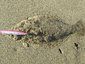 横目にはヒラメに見えたので、(あとで伺ったらサカタザメとのことでした)ヒラメでもいいと思い、初日にヒラメをキャッチしたルアー、ストームブレイカーをキャスト!