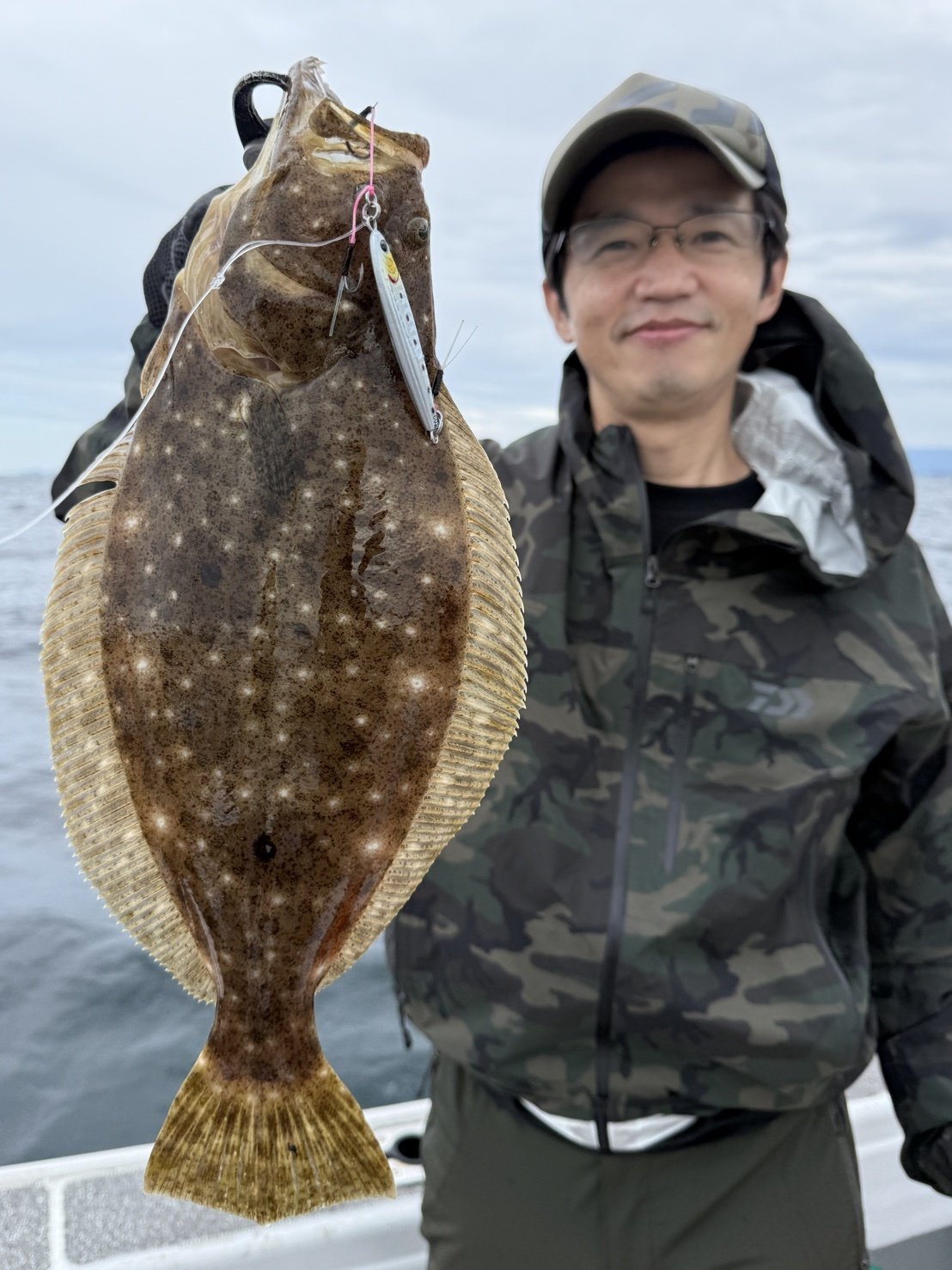 雨に打たれながらではありましたが、開始早々から60upのヒラメをキャッチ!