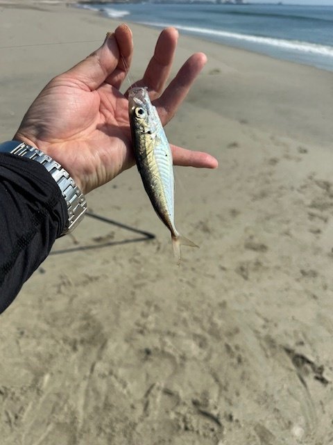 日が差してからはショアジギングのタックルにチェンジ!開始2投目から連続で2ヒットしますが、どちらも波打ち際でバラシ!どちらも良い引きだっただけに悔しい…何の魚だったんだ…。その後何とか本命のワカシ(ブリの幼魚)が1匹!小さいながらも良い引きでした!